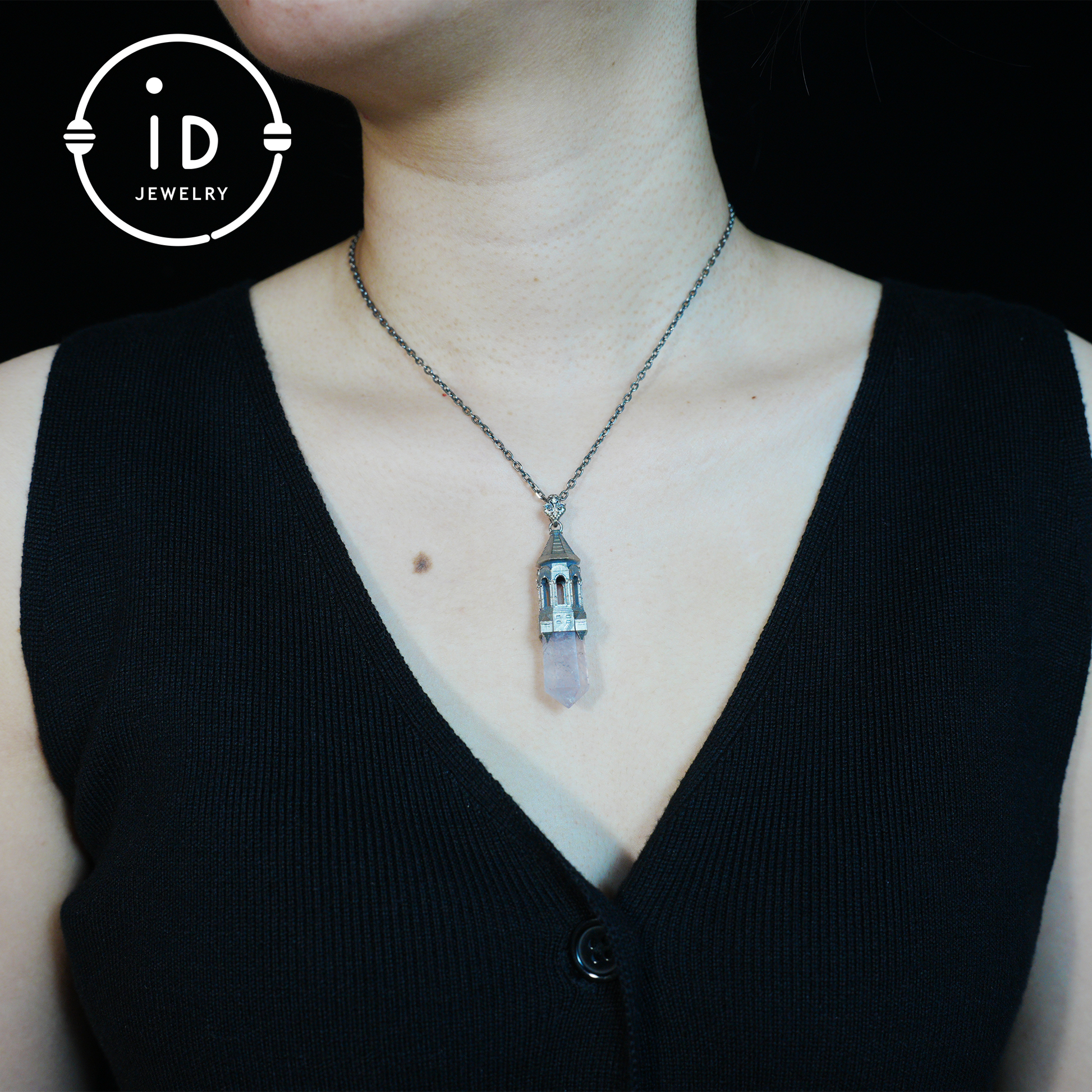 Amethyst Pendant 925 Silver, Gothic Tower Necklace, Statement Jewelry Totem Talisman, Gift for Her, Birthday Jewelry Idea