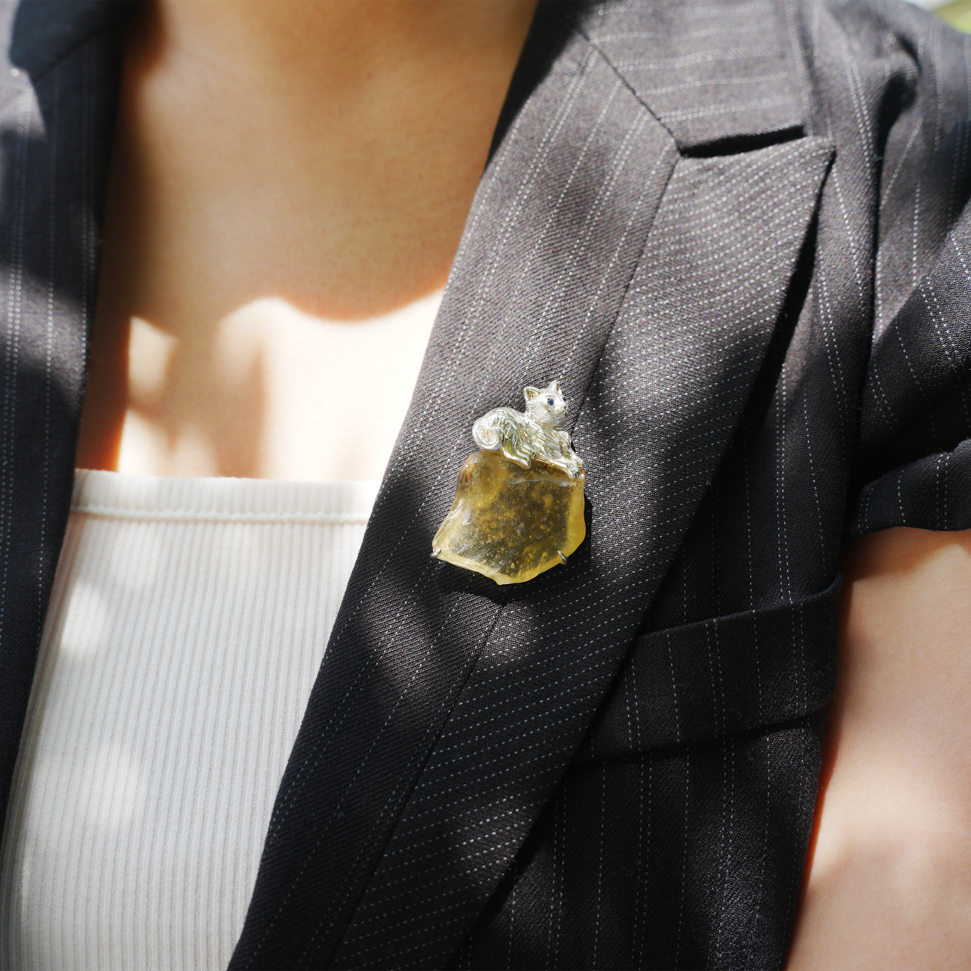 925 Silver Cat Pendant Brooch | Raw Glass Animal Totem Jewelry | Gift for Cat Lovers & Her