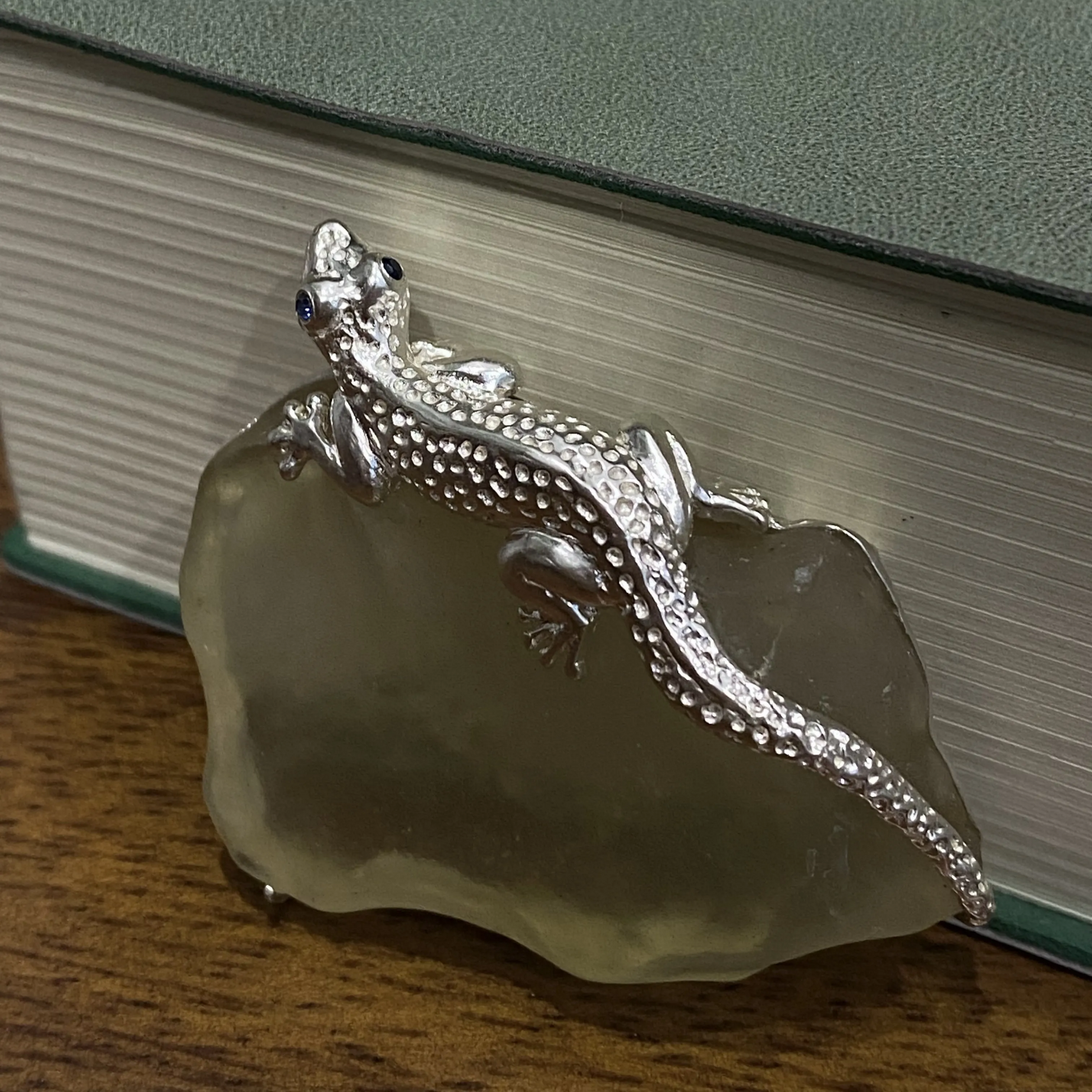 Lizard Brooch Pendant in 925 Silver with Libyan Desert Glass | Handmade Jewelry of Resilience & Renewal | Gift for Him or Her