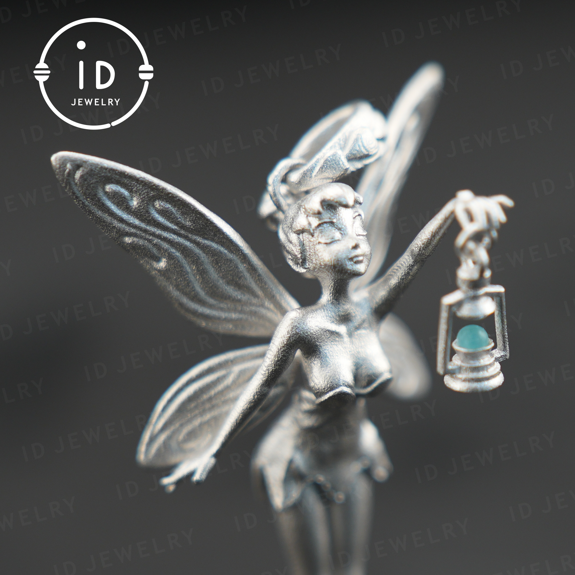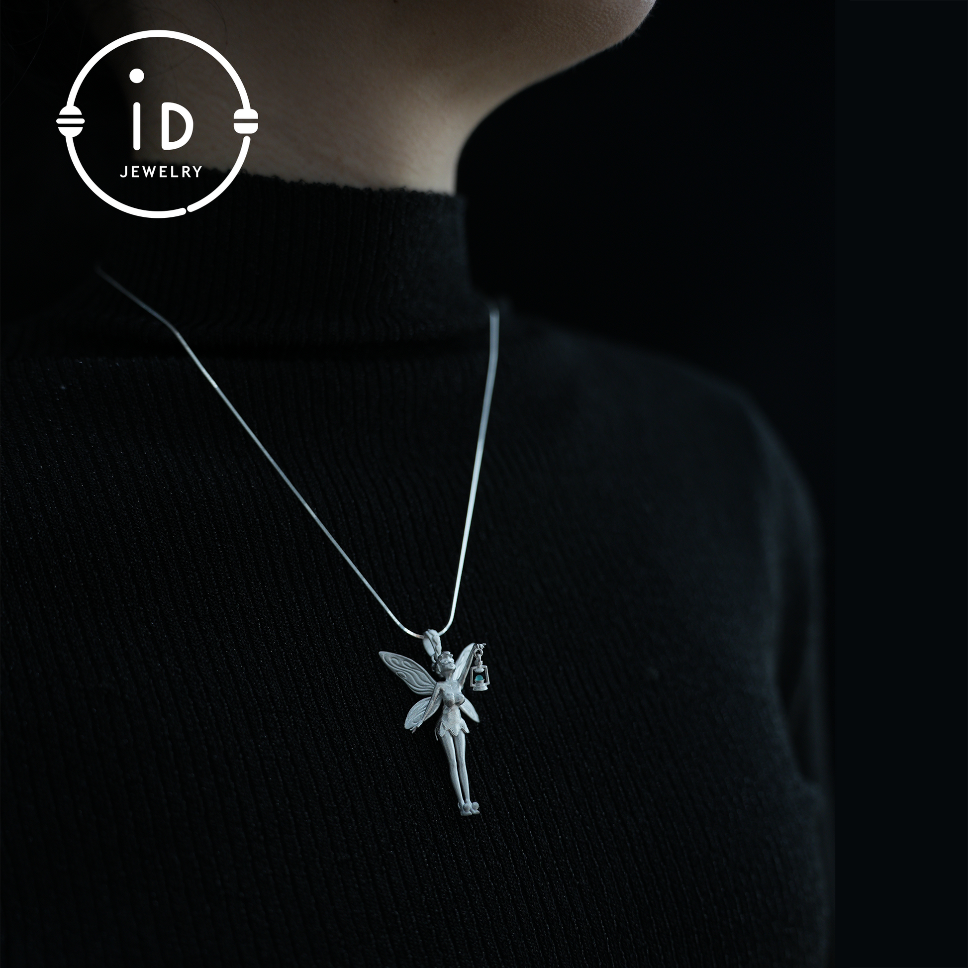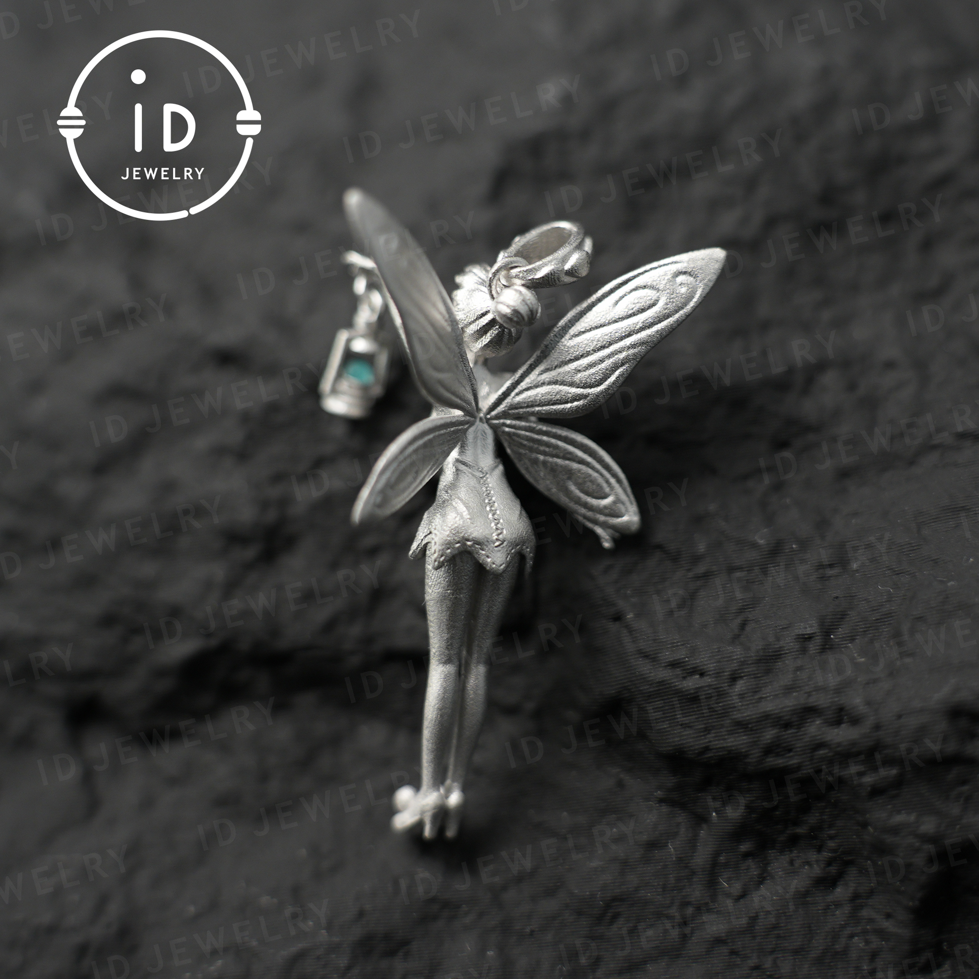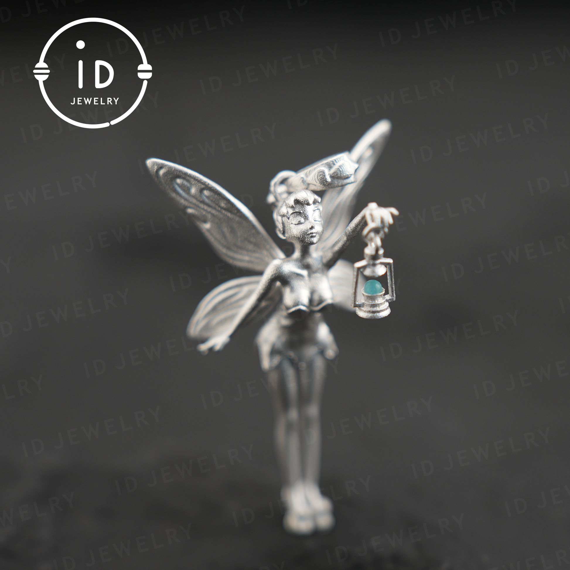 Dieser handgefertigte Feenanhänger aus 925er Sterlingsilber ist mit einem schimmernden weißen Kristall verziert und verleiht Ihrer Schmucksammlung einen Hauch von Magie. Das filigrane Design zeigt eine elegante Fee mit ausgebreiteten Flügeln, die eine Laterne hält – ein Symbol der Hoffnung und Führung.