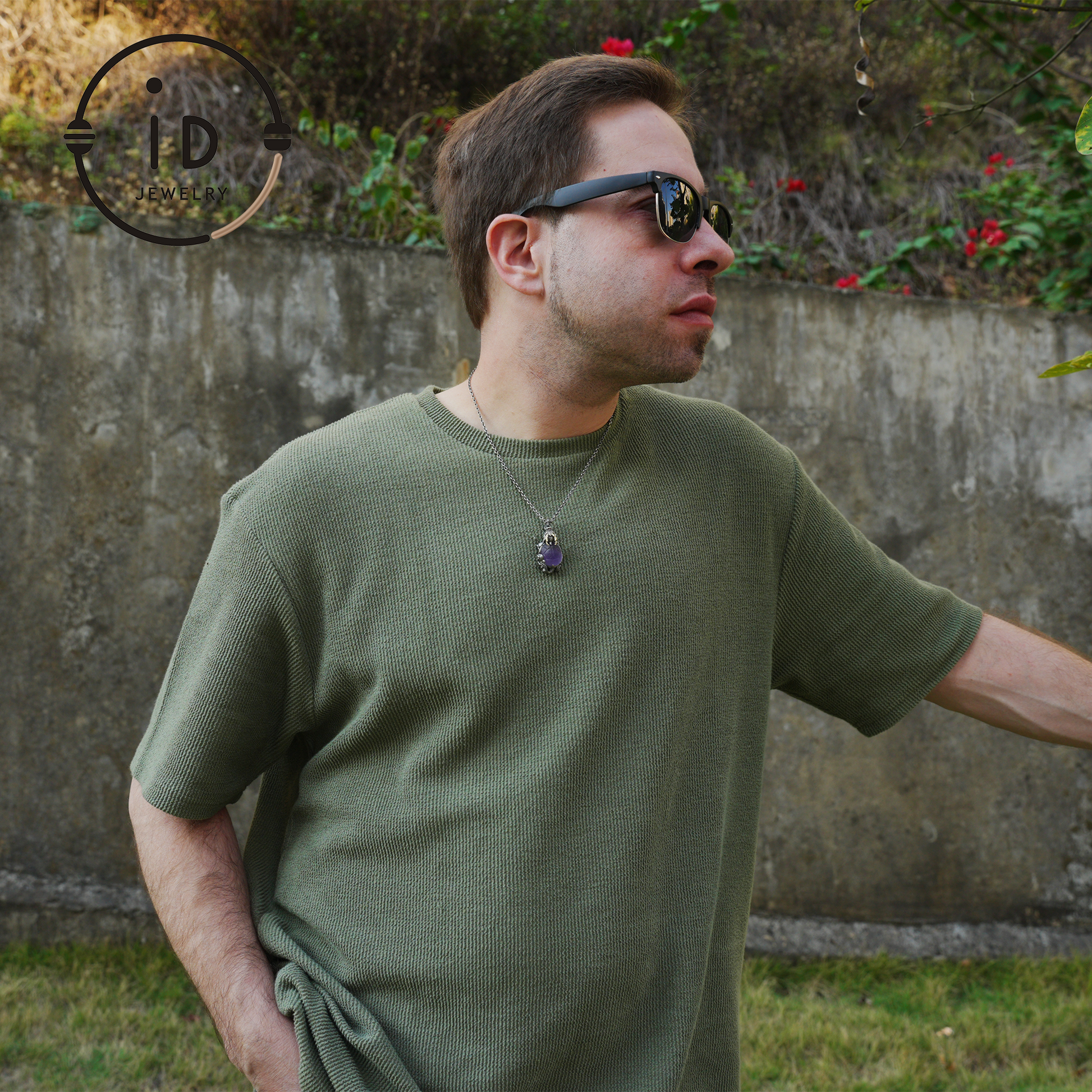 In the symbolic union of strength and quietude, this amethyst pendant brings together the essence of two natural forces: the endurance of the turtle and the majestic presence of the dragon. Crafted in oxidized 925 sterling silver, this pendant is more than a decorative talisman— it reflects inner balance, protection, and mindful awareness. The hand‑carved amethyst sits at the center like an energy core, making it a meaningful companion for daily wear, meditation, or as a thoughtful gift.