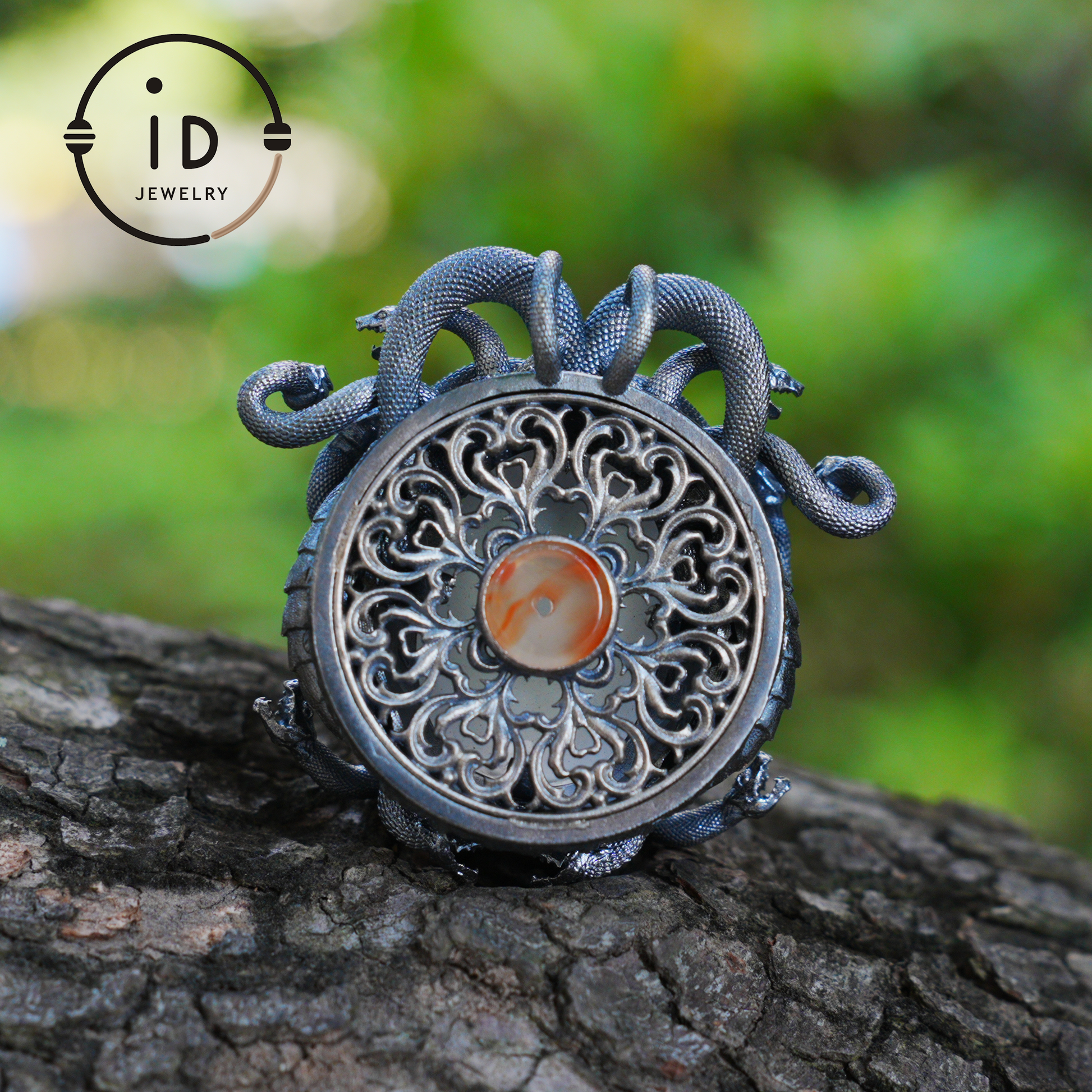 Step into the world of mythology with this stunning handcrafted Medusa Pendant, featuring an intricate 925 sterling silver design with a mesmerizing hand-carved white crystal. Inspired by the legendary Gorgon, this pendant captures the mystique and elegance of Medusa in breathtaking detail.