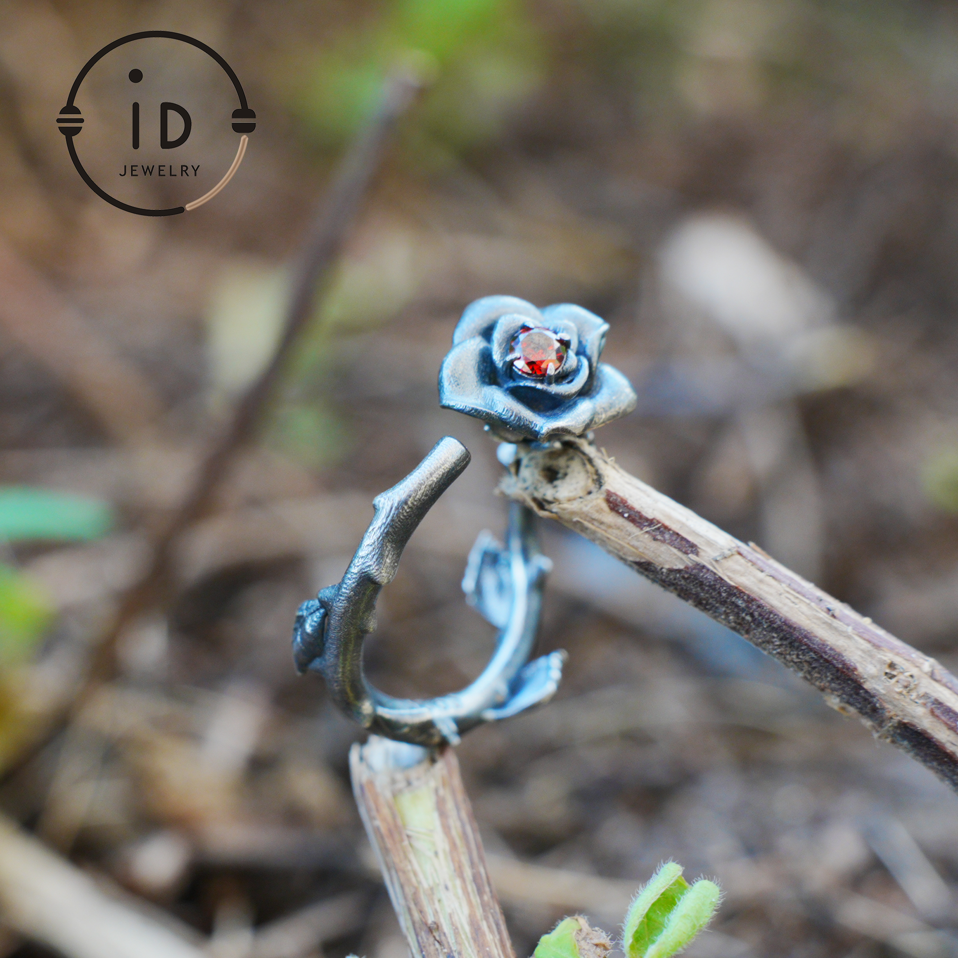 Rose Ring with Blood Red Stone, Gothic Vow Jewelry, Handmade Fantasy Amulet of Thorns and Oath, Symbolic Rose Design