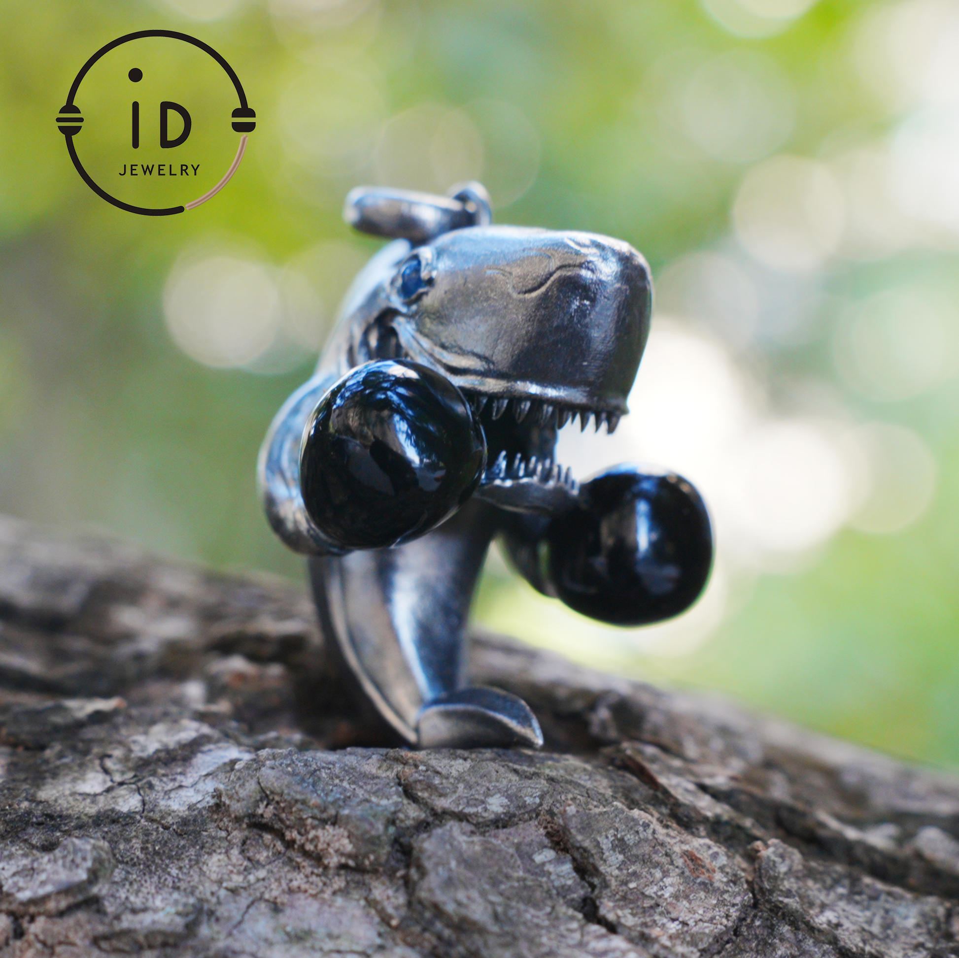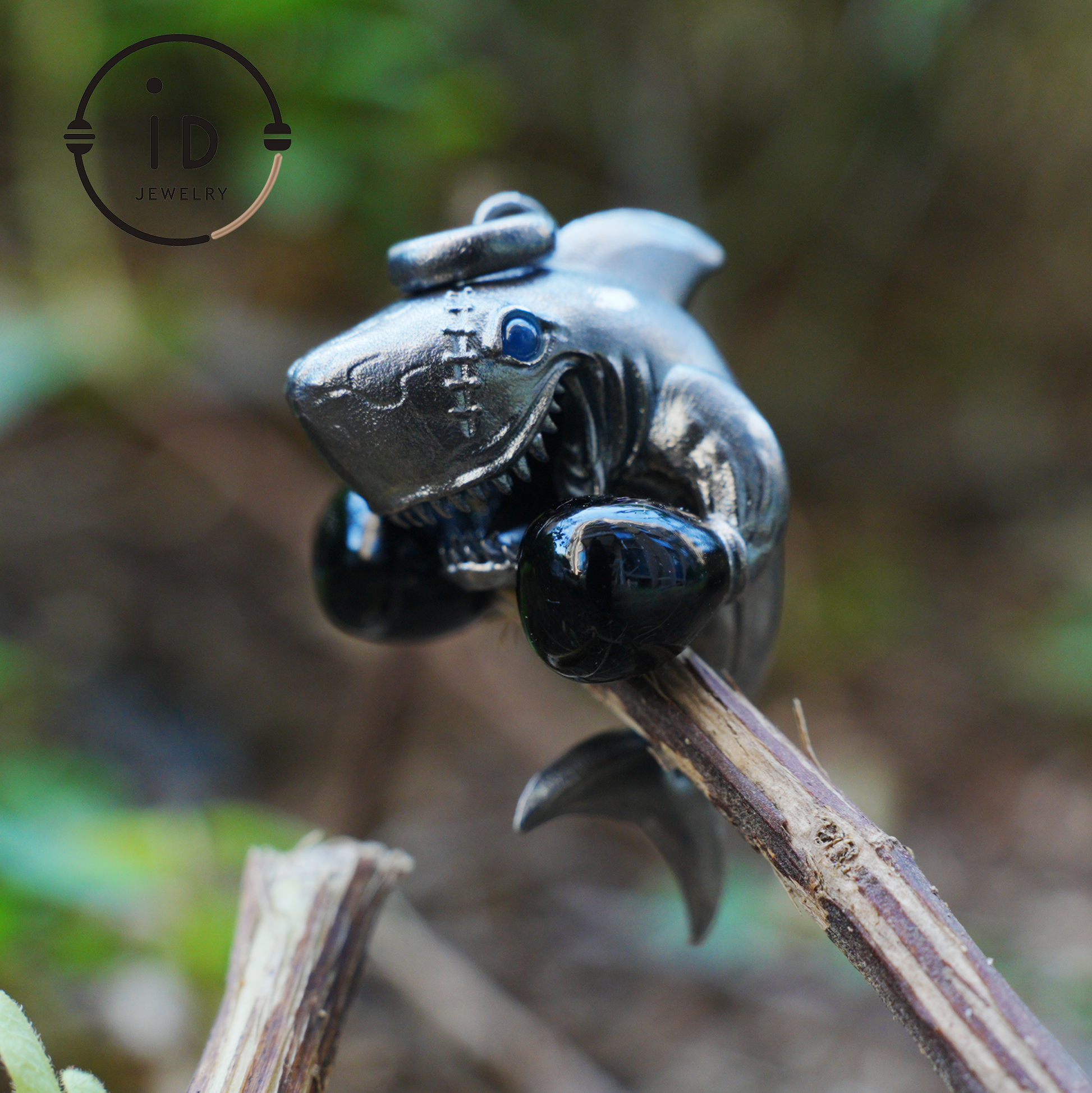 Shark Pendant in Oxidized 925 Sterling Silver with Blue Agate Gem · Ocean Totem Jewelry Gift for Men and Sea Lovers