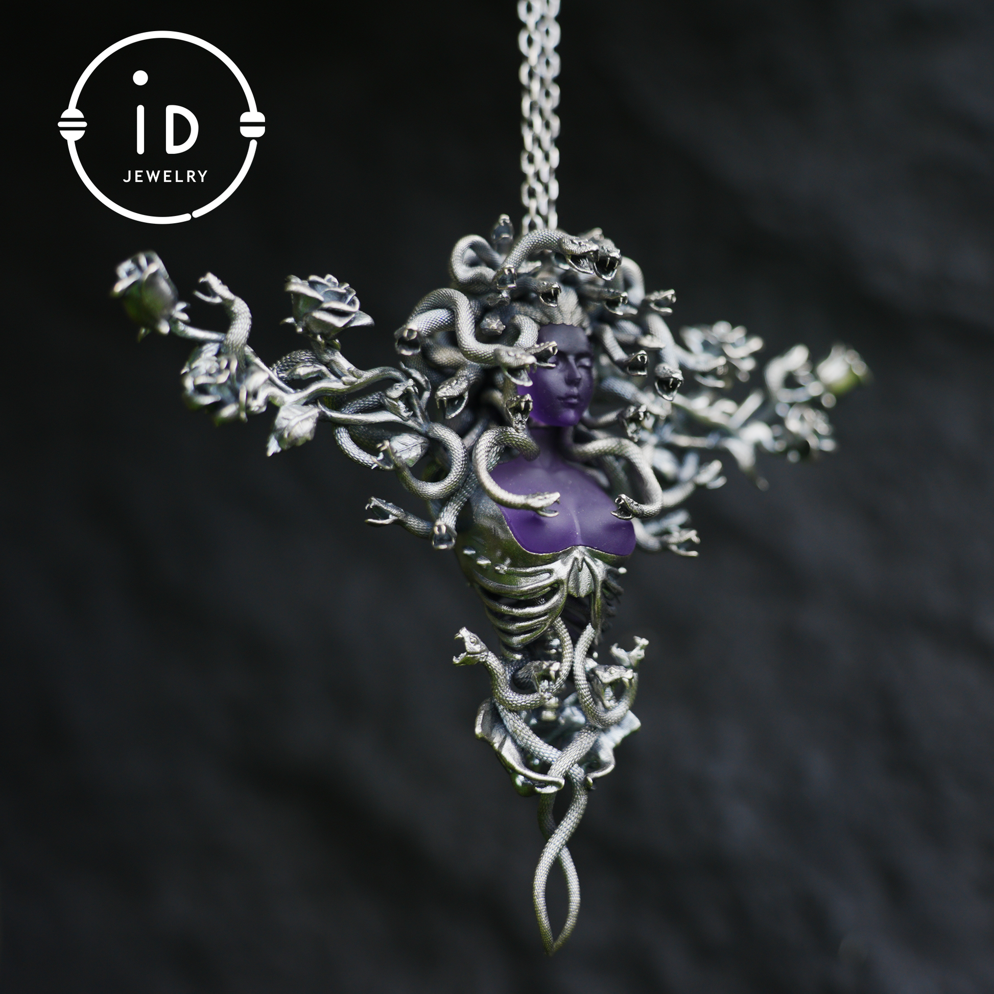 2-in-1 Medusa Pendant Brooch|Handcrafted Gothic Jewelry with Amethyst|Symbol of Feminine Awakening & Protection|Myth-Inspired Gift for Her
