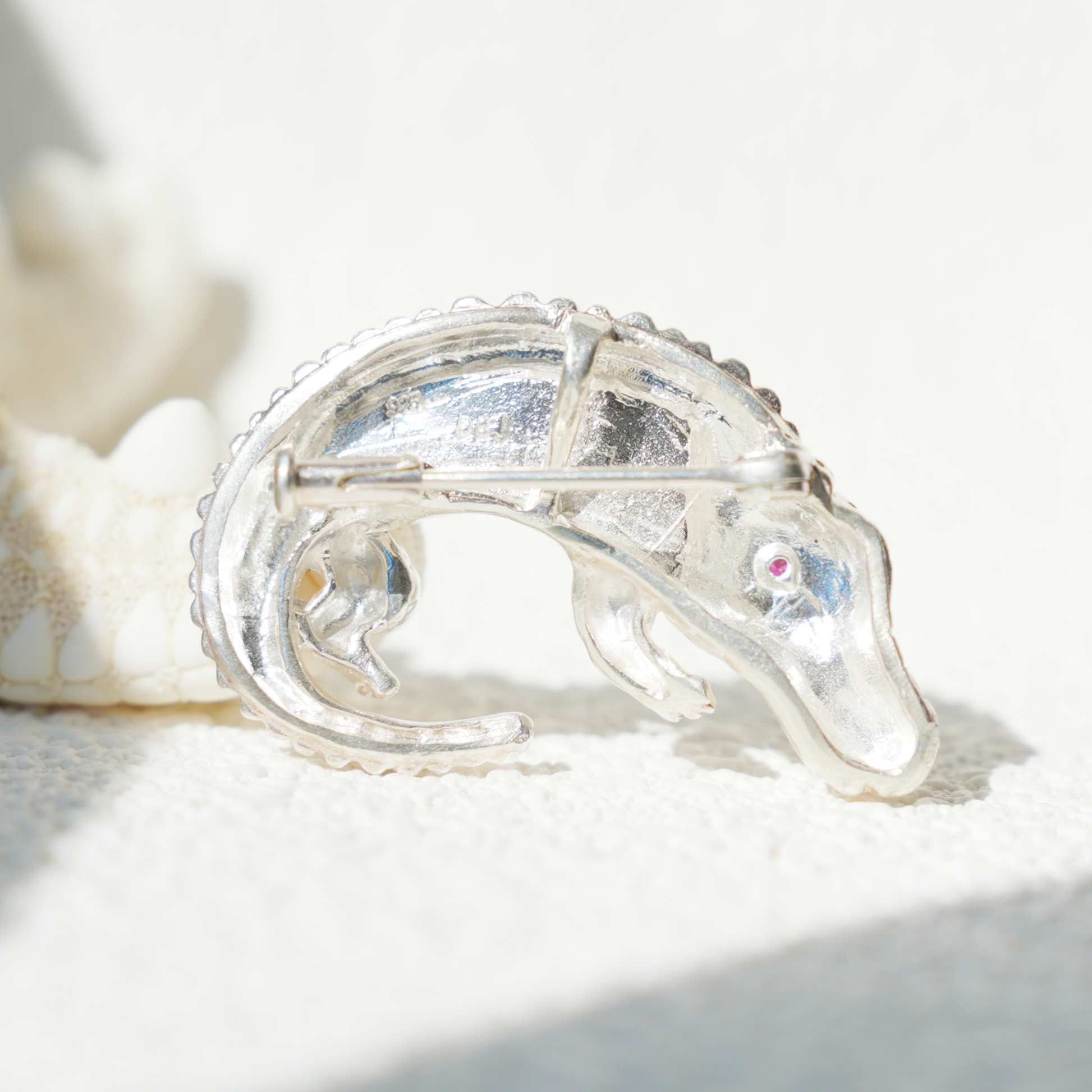 925 Silver Crocodile Pendant Brooch | Enamel Totem Jewelry | Gift for Him or Her