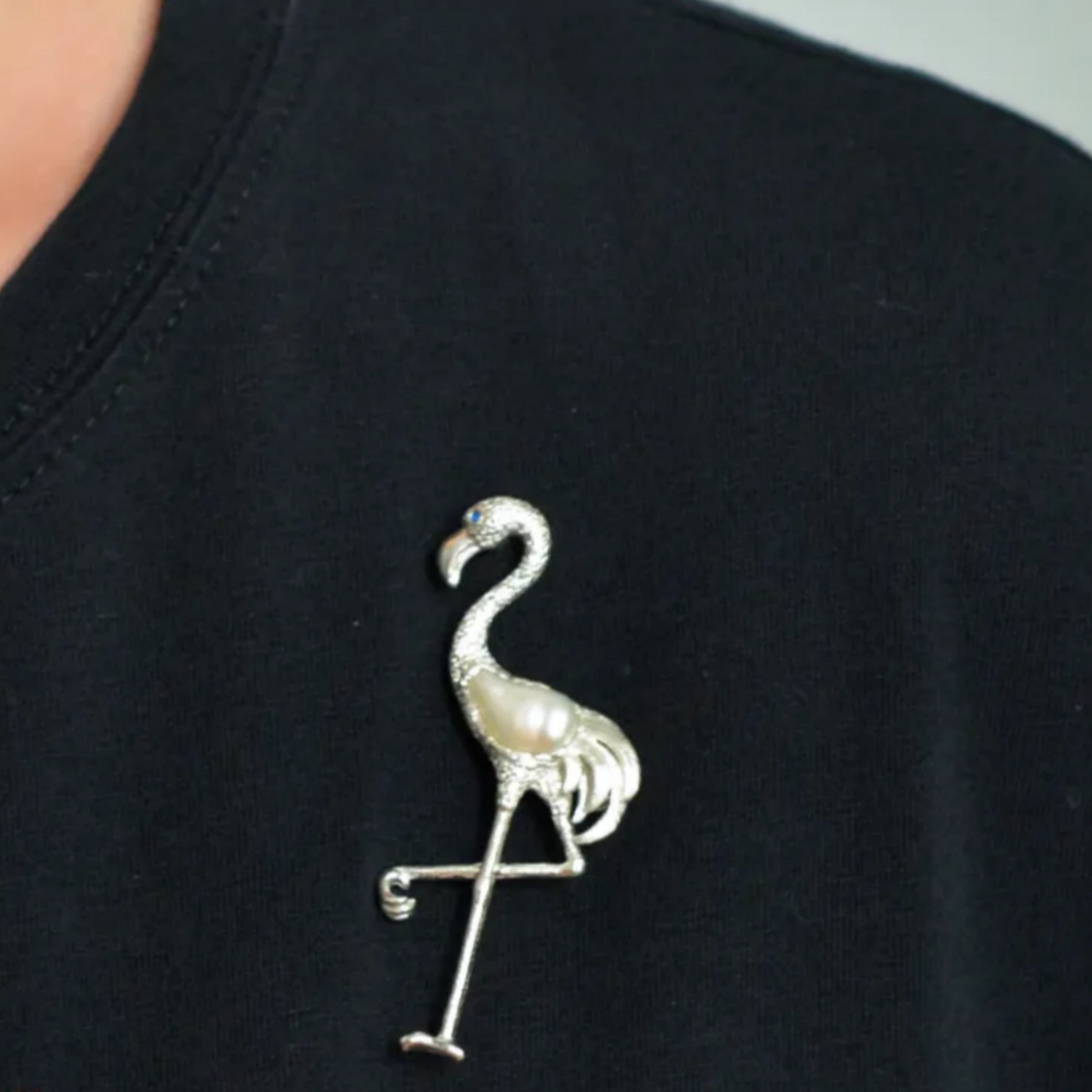 925 Silver Flamingo Brooch Pendant | Pearl Bird Jewelry | Handmade Elegant Gift for Women | Balance & Grace Symbol Pin