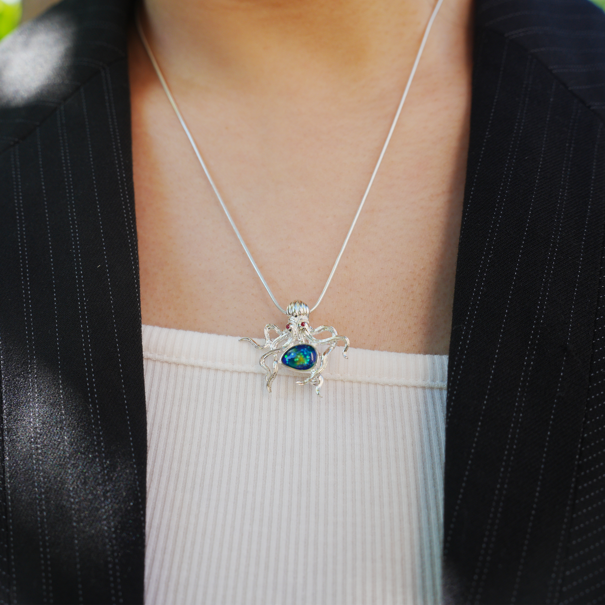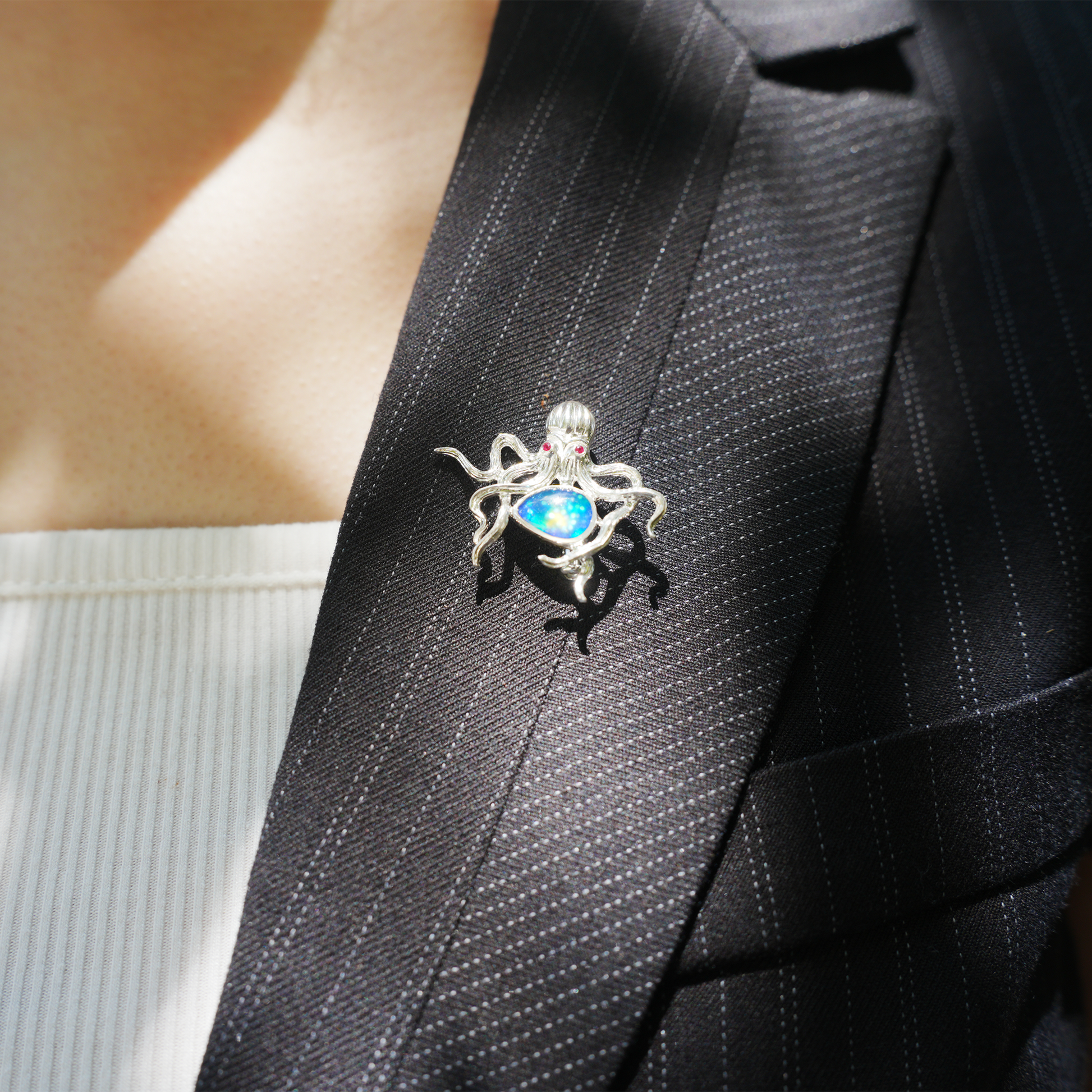 “Deep Mind” — a 2-in-1 octopus pendant and brooch handcrafted from 925 sterling silver and hand-painted enamel.