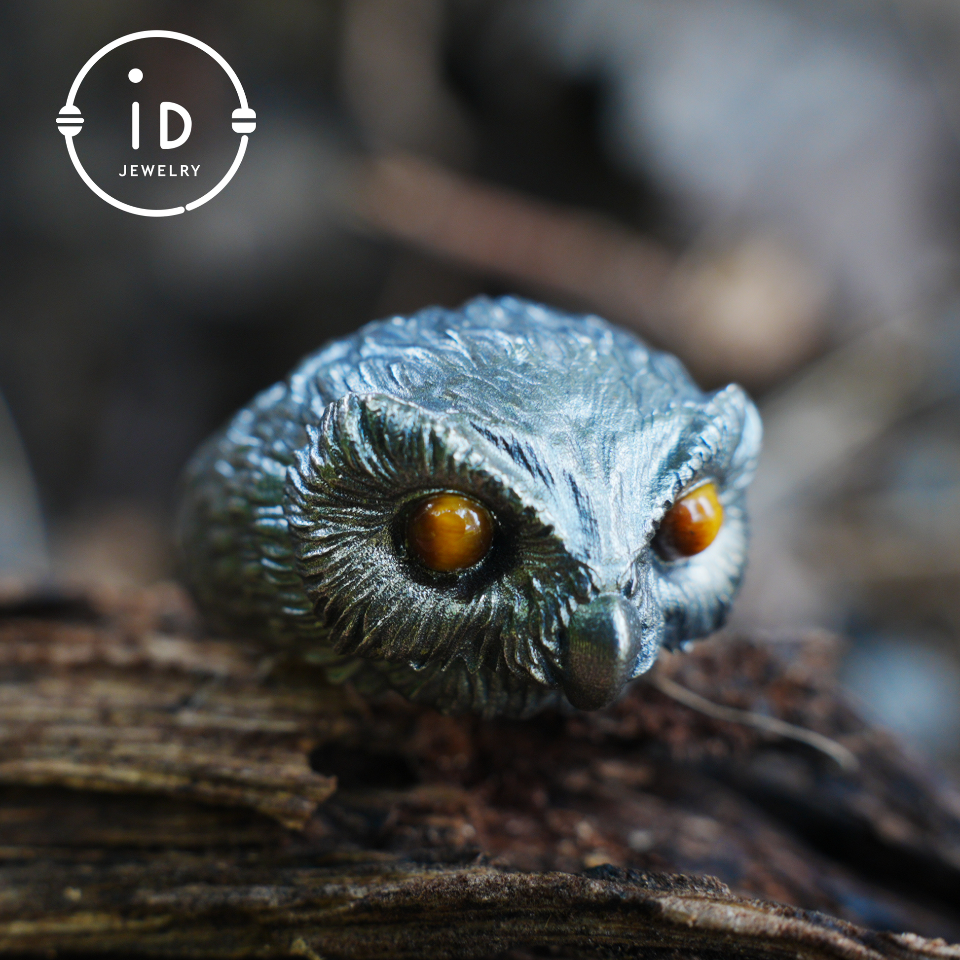 925 silver owl ring with tiger eye, gothic animal jewelry, handcrafted talisman ring, gift for men birthday Christmas