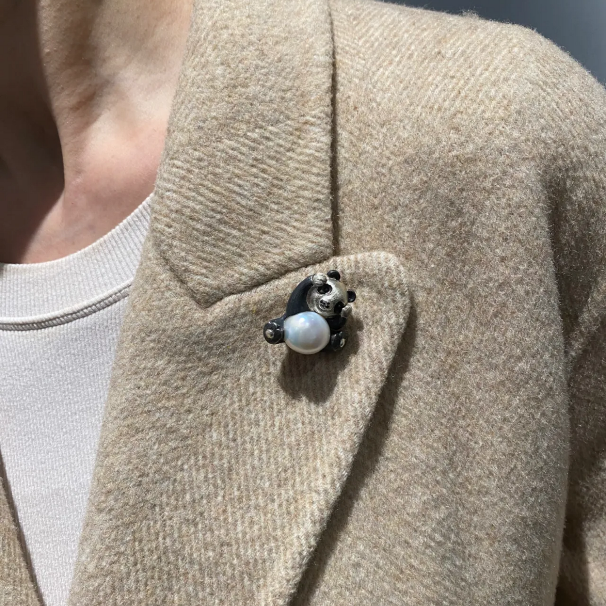 Natural baroque pearl cradled in panda’s arms—unique for every piece