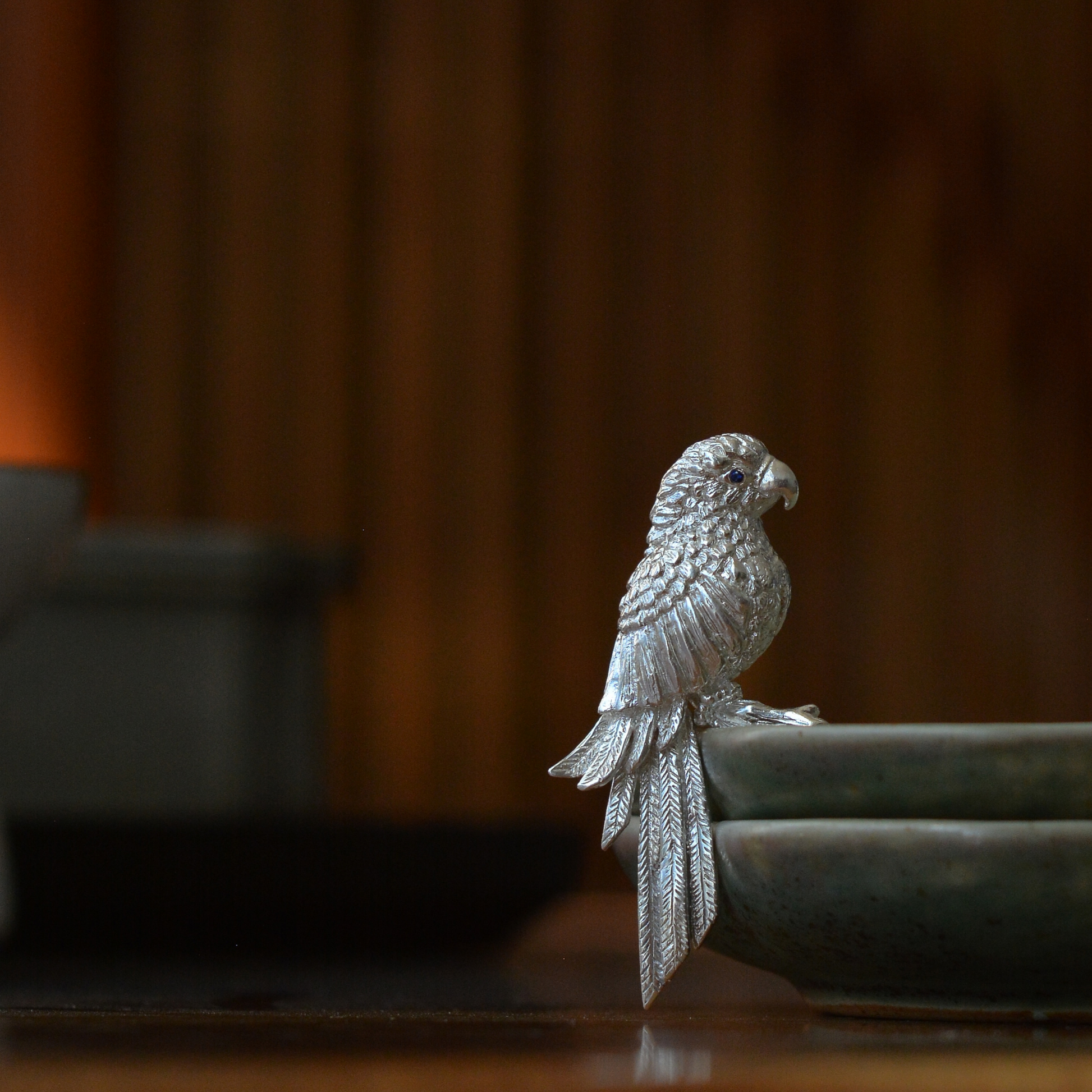 This handcrafted parrot brooch pendant symbolizes expression, empathy, and thoughtful communication.