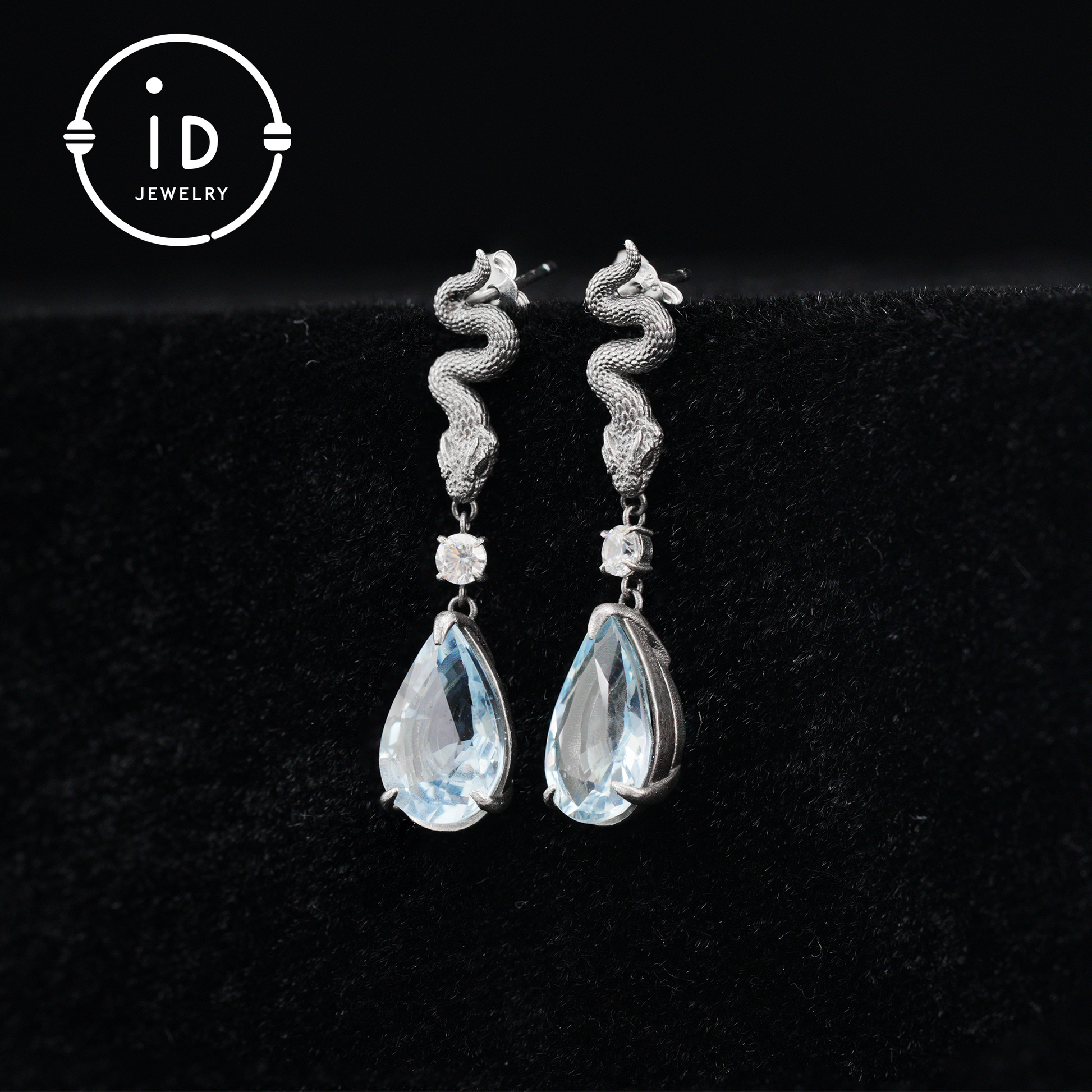 925 Sterling Silver Snake Drop Earrings with Aquamarine Crystal – Myth-Inspired Serpent Jewelry for Healing, Protection & Emotional Clarity