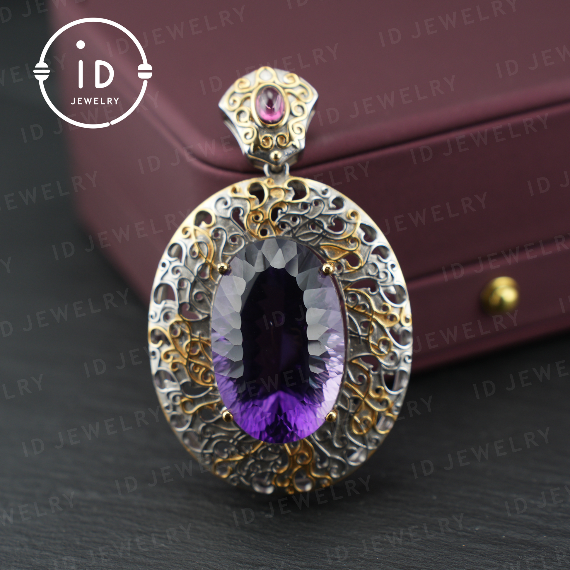 Antique Amethyst Pendant| Silver Gold Baroque Style| Handmade Gemstone Jewelry| Vintage Design| Women’s Gift