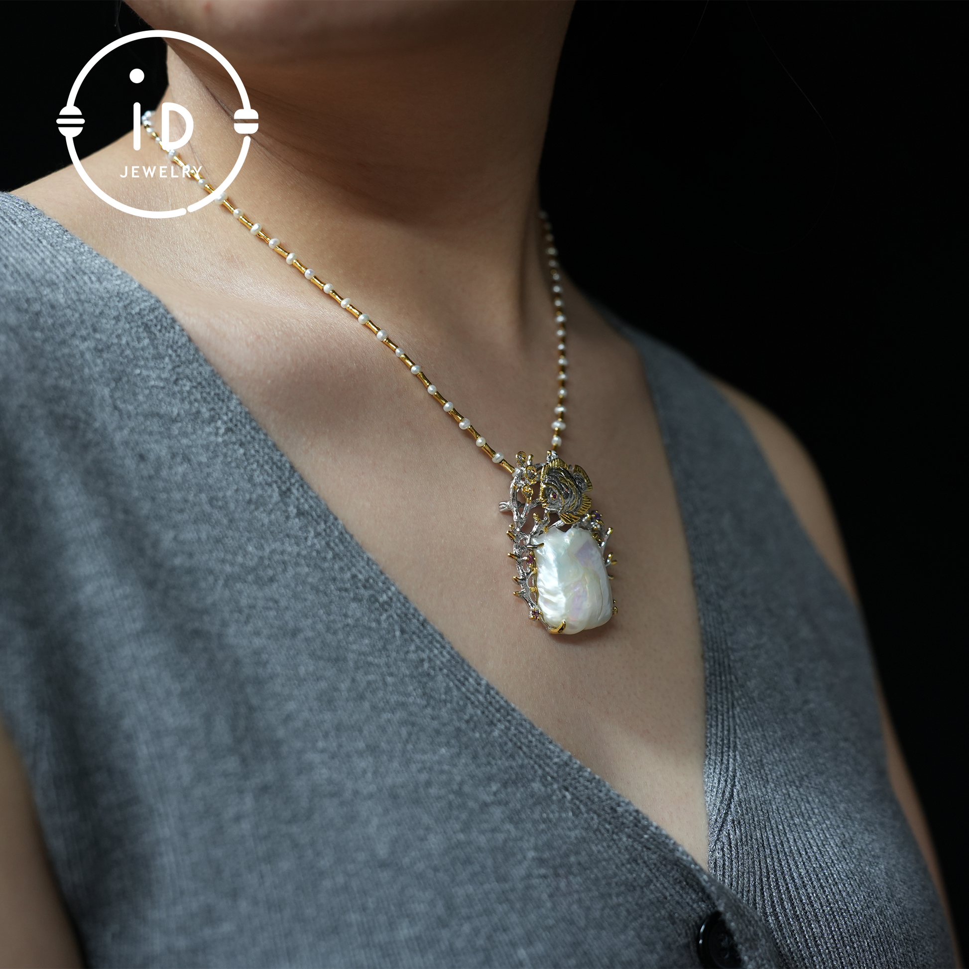 Baroque freshwater pearl as the centerpiece.