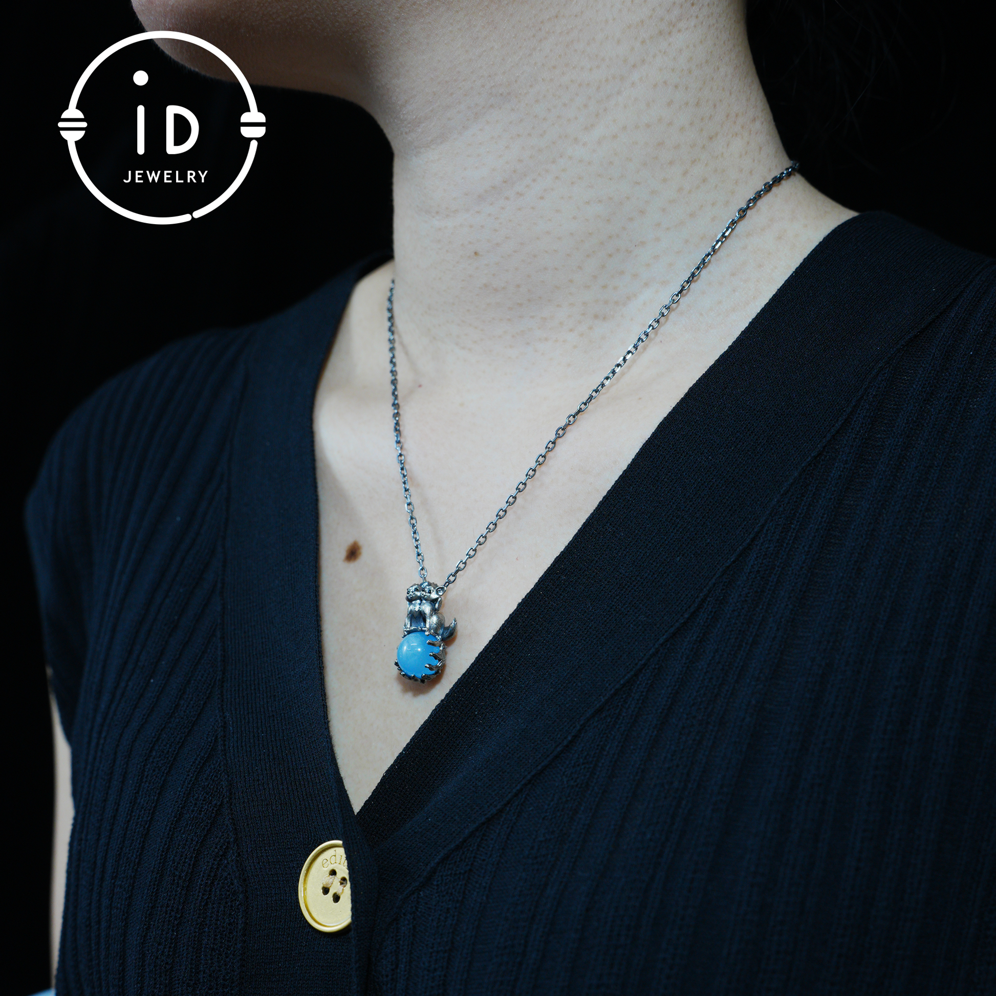 Fox Totem Pendant with Aquamarine, Fantasy Animal Amulet Necklace, Handcrafted Spirit Jewelry, Twin Guardian Design