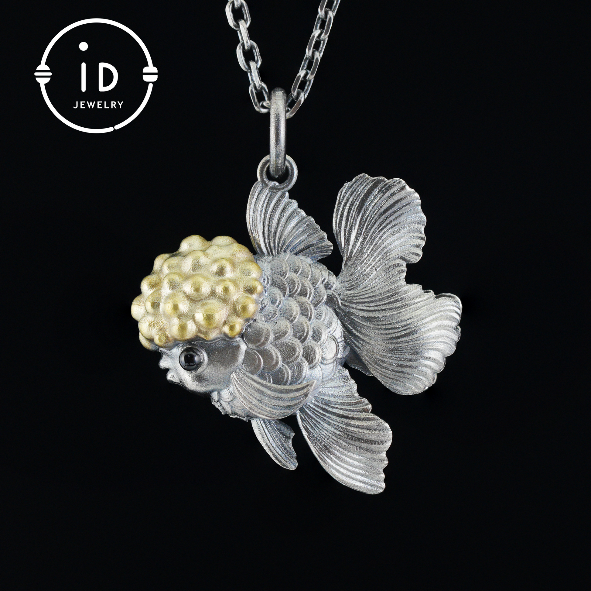 Goldfish Pendant in 925 Sterling Silver with Agate and Brass, Handmade Animal Jewelry in Fairytale Style, Talisman Necklace Gift for Her