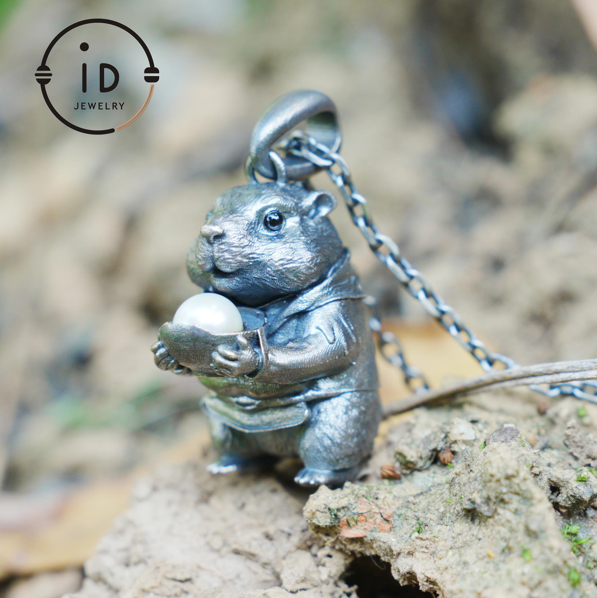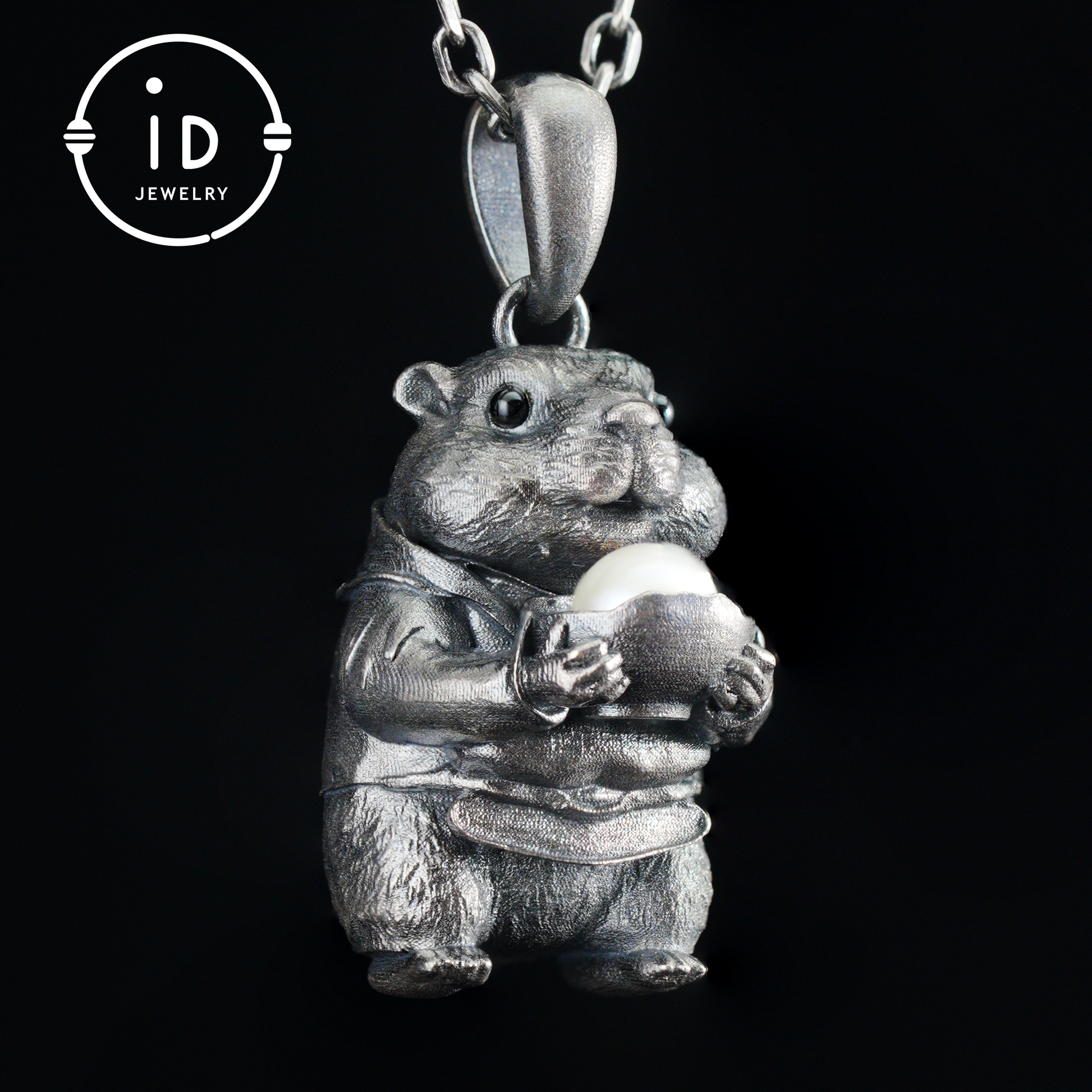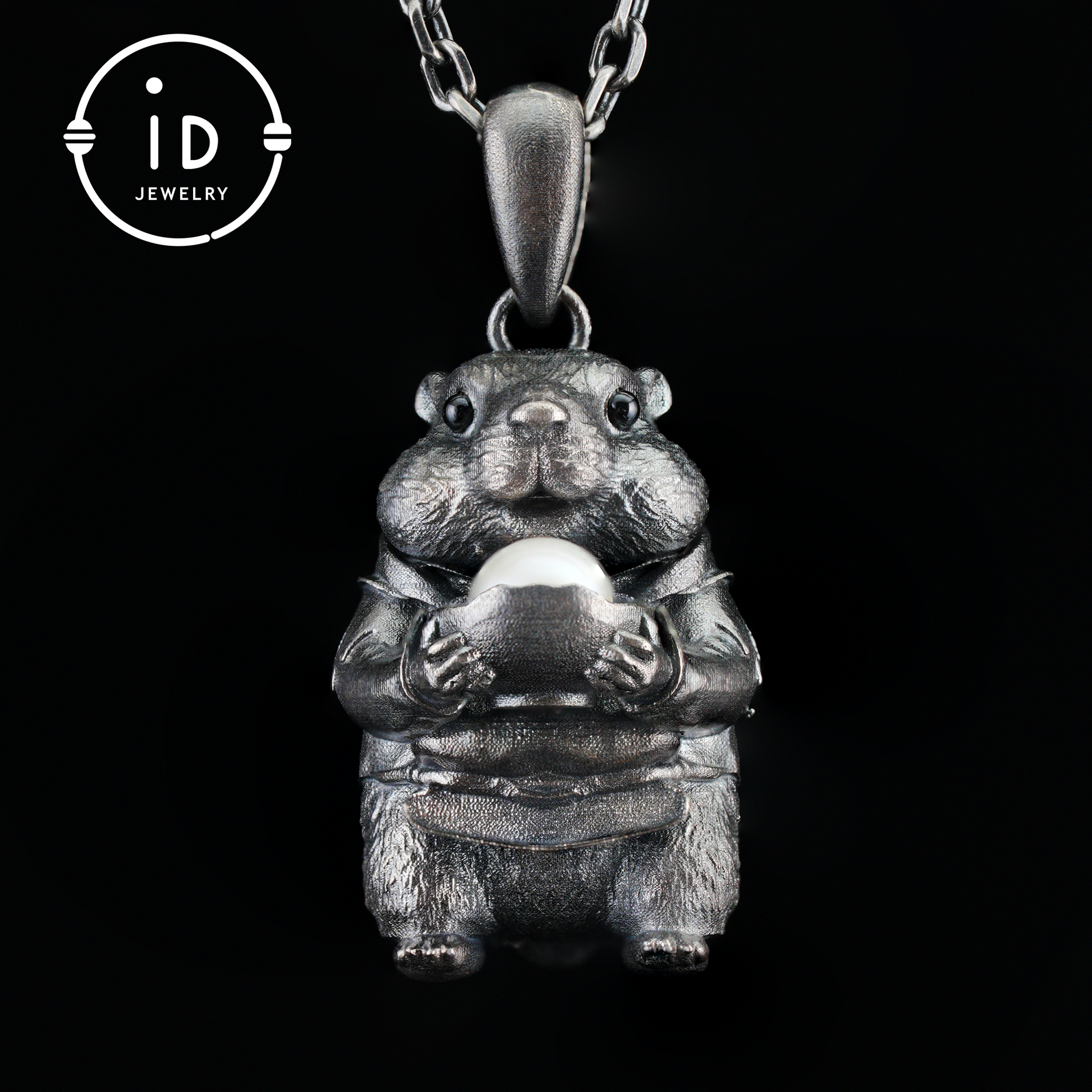 Hamster Pendant with Pearl, Whimsical Animal Totem Amulet, Handcrafted Fairy Tale Jewelry, Symbol of Care and Gentle Devotion