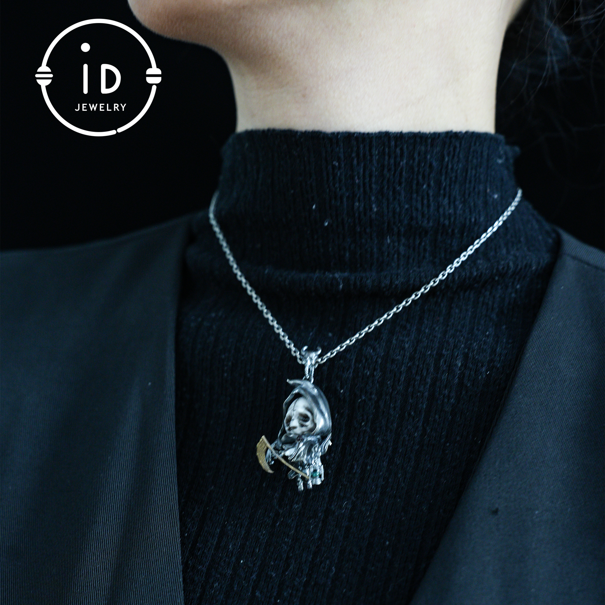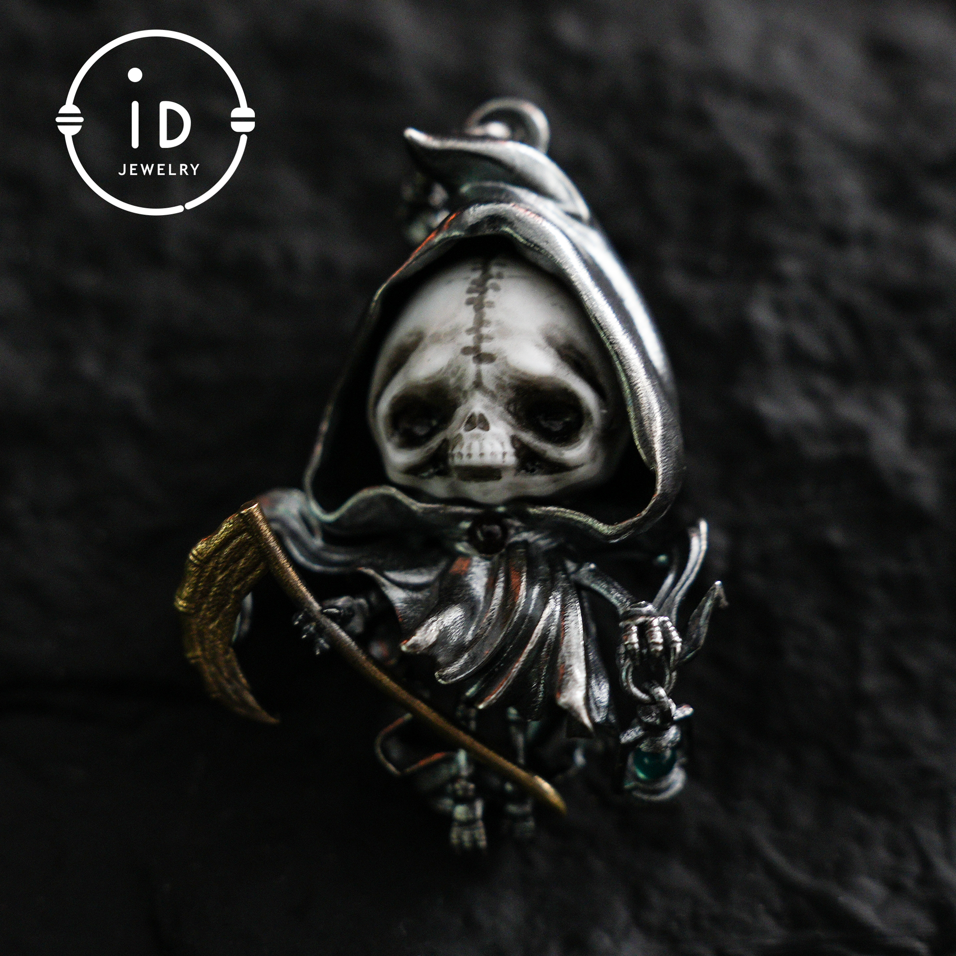 Handmade Grim Reaper Pendant | Gothic Skeleton Amulet | Silver Charm | Fantasy Art Jewelry