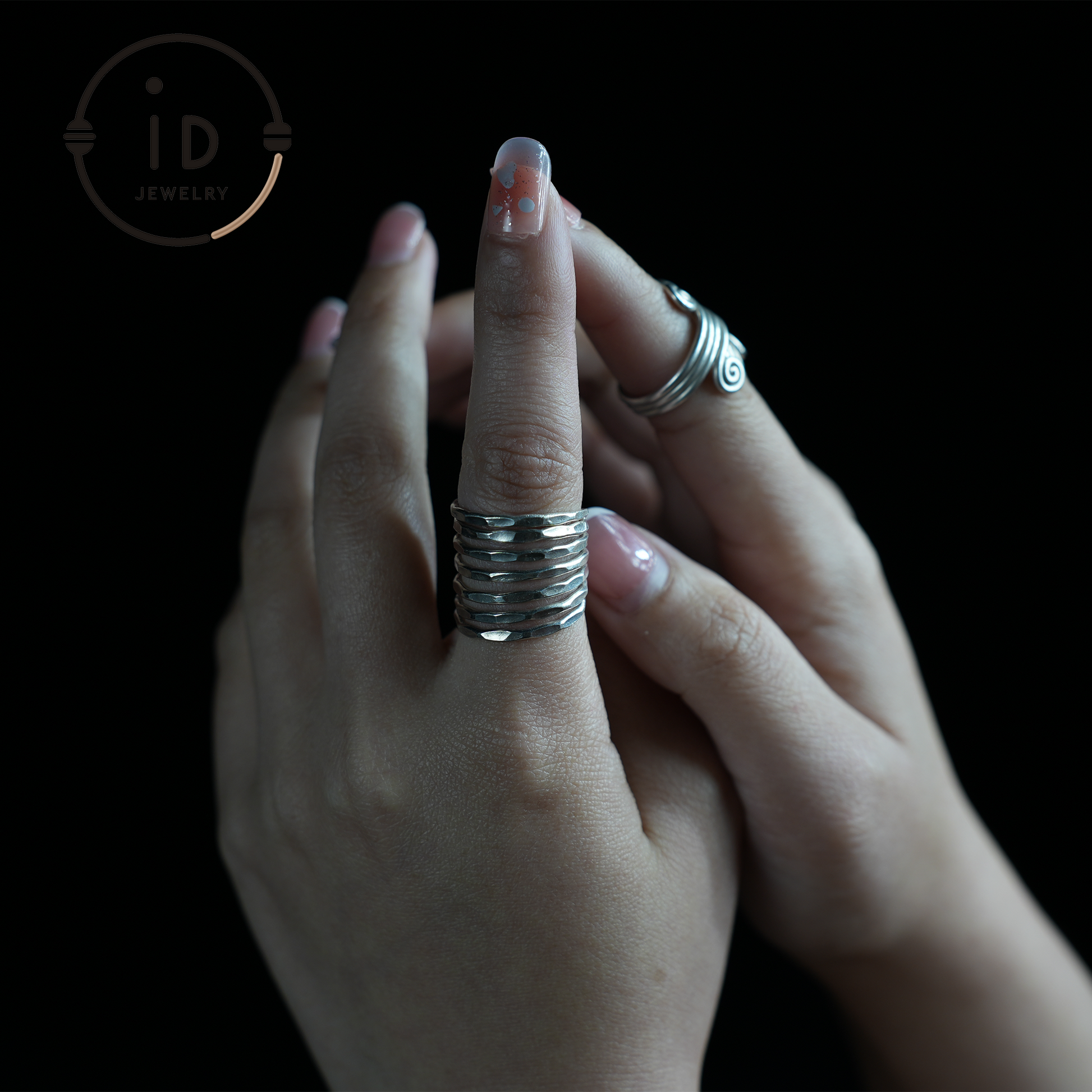 This handcrafted ring features a stunning multi-layered design with a hammered texture, offering a raw yet sophisticated look. Made from premium sterling silver, this piece is both durable and stylish.