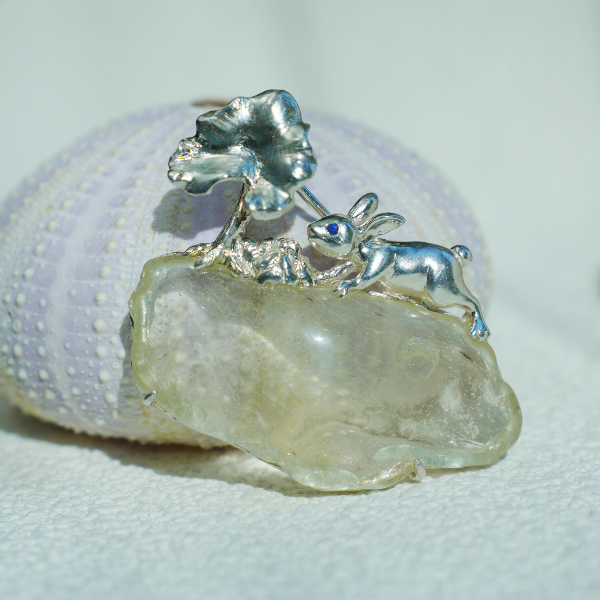 Libyan Desert Glass Rabbit Pendant Brooch | 925 Silver Fairytale Jewelry Gift for Her