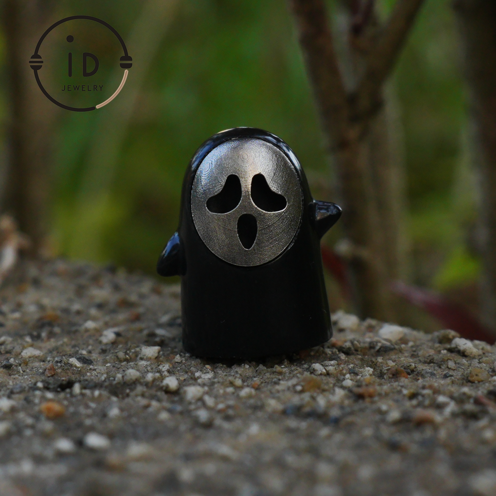 The black jade stands for protection and grounding, while the oxidized silver mask reflects boundaries and identity.
