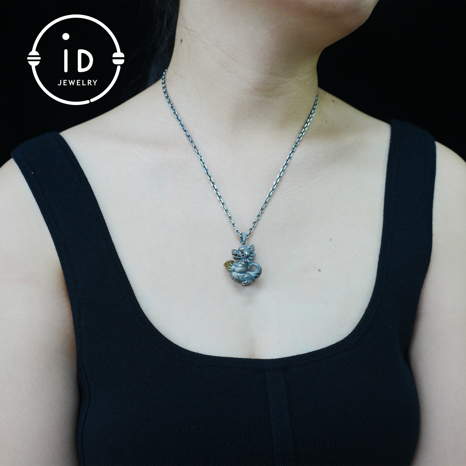 Lucky Oriental Dragon Charm Pendant in Sterling Silver and Brass – Symbol of Gentle Protection and Good Fortune – Handcrafted Feng Shui Amulet