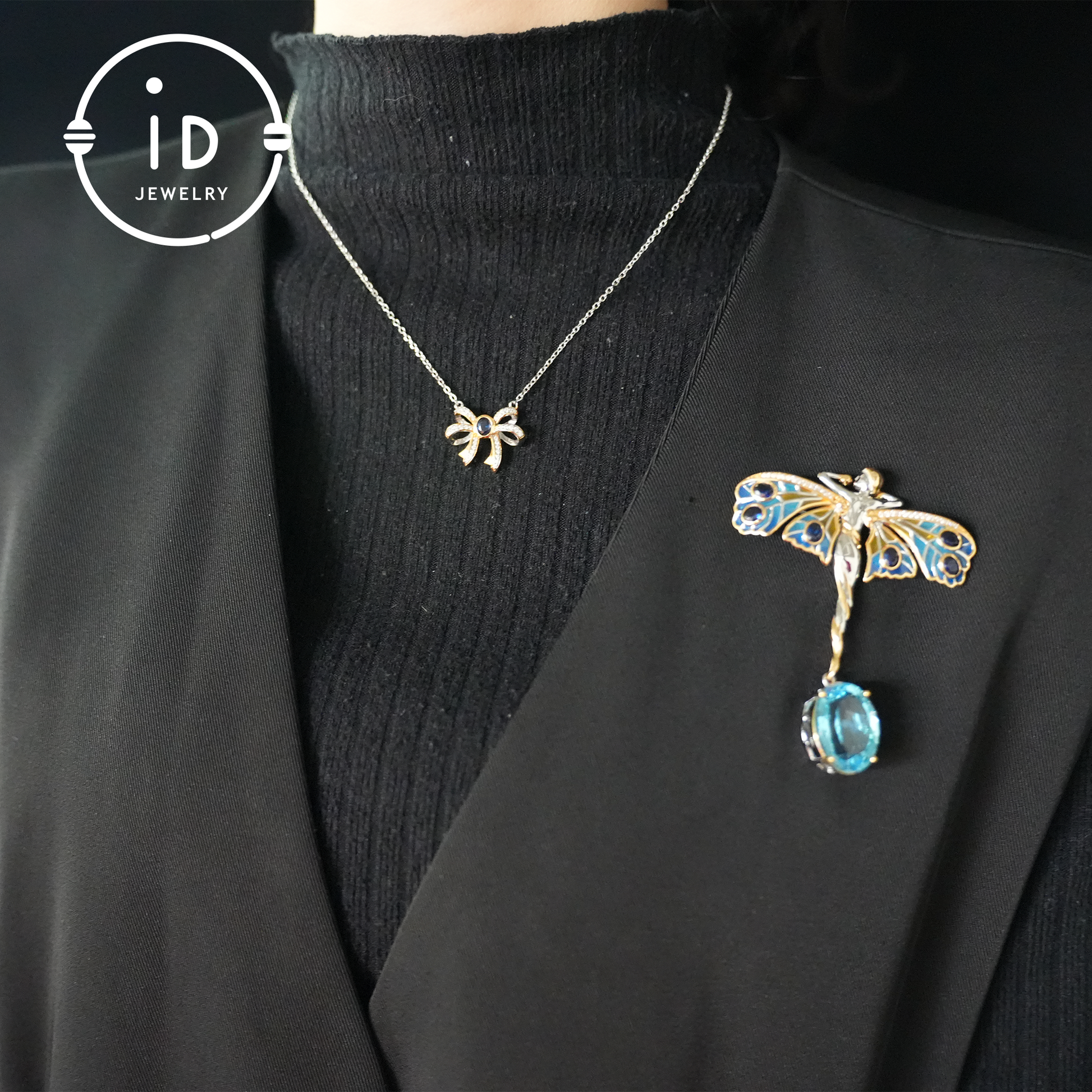 Magical Fairy Necklace| Natural Topaz Pendant| Gold-Plated Brooch| Handmade Vintage Jewelry| Unique Gift for Women