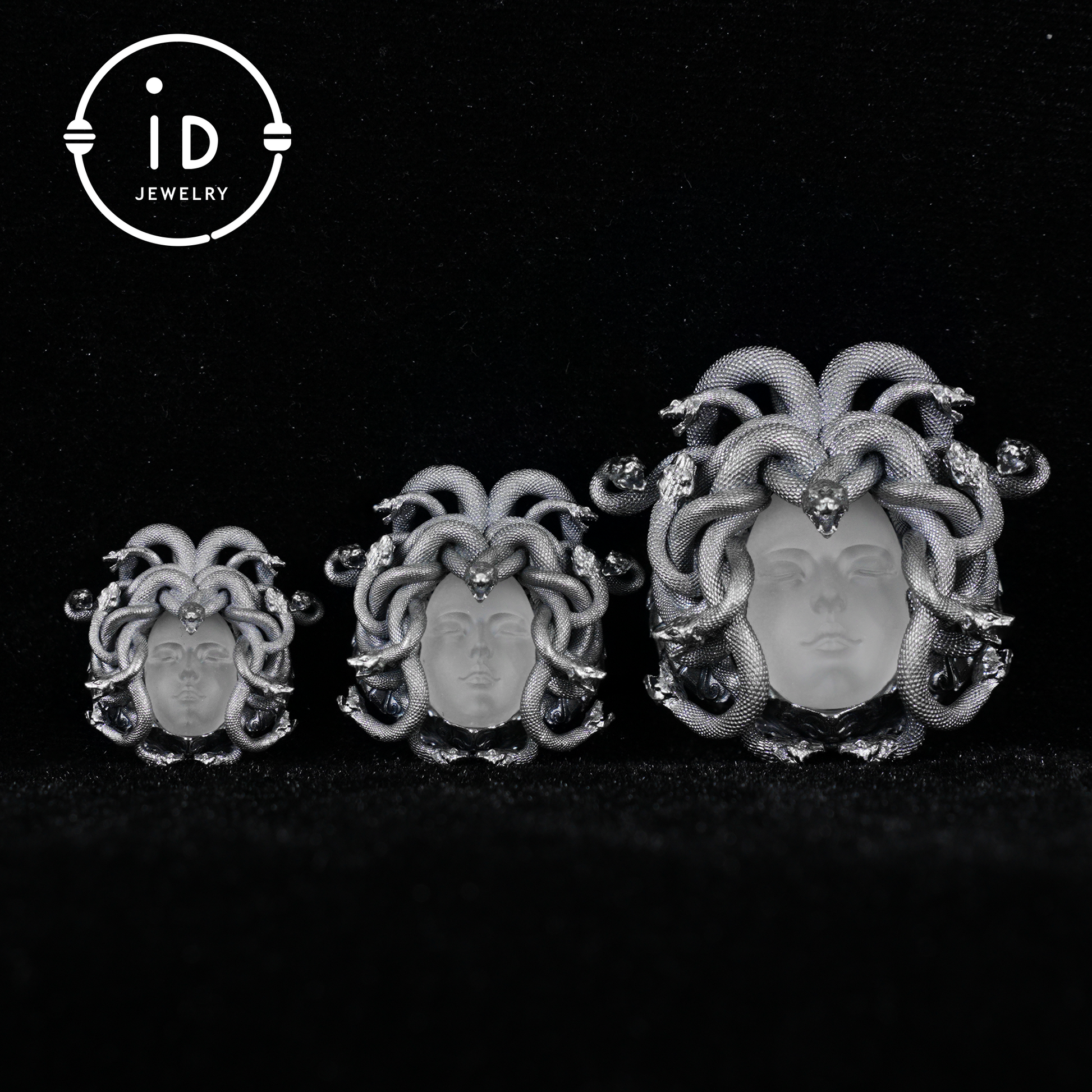 Step into the world of mythology with this stunning handcrafted Medusa Pendant, featuring an intricate 925 sterling silver design with a mesmerizing hand-carved white crystal. Inspired by the legendary Gorgon, this pendant captures the mystique and elegance of Medusa in breathtaking detail.