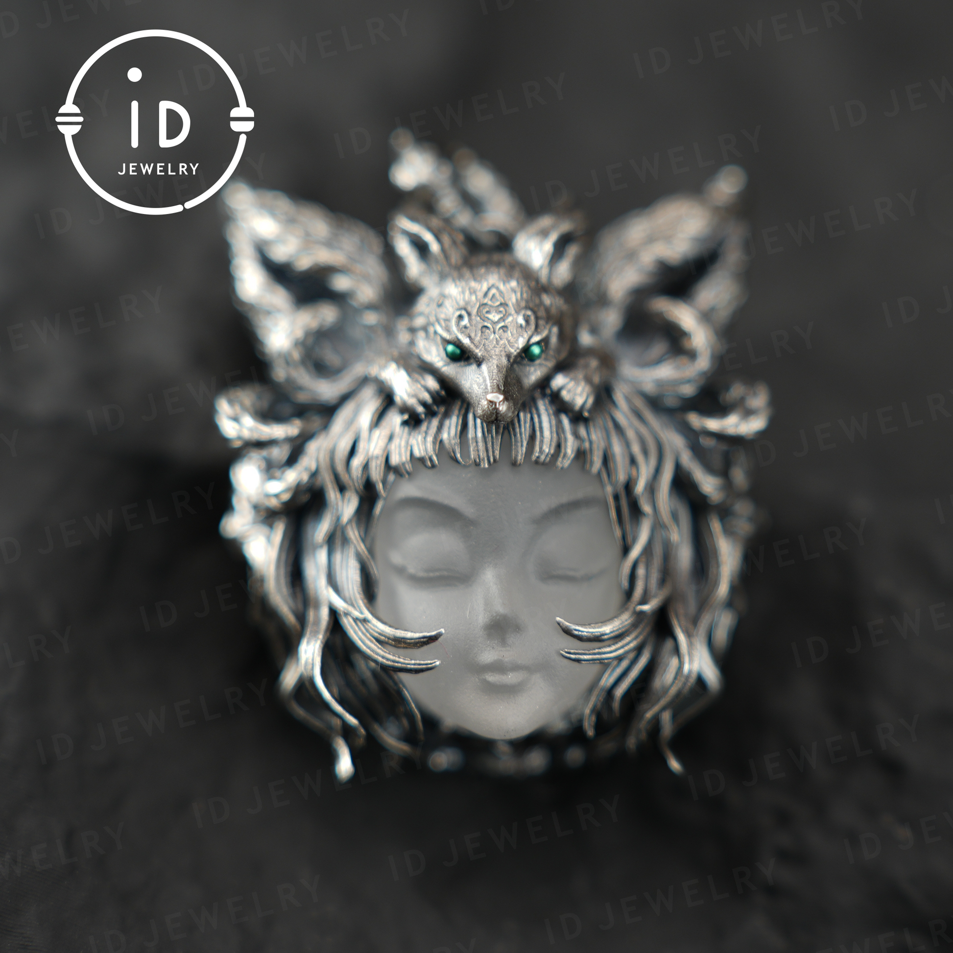 This pendant was born from a vision — a mystical encounter in a moonlit forest, where silence spoke and the trees seemed to breathe. At the center of this vision stood a serene priestess, crowned not with gold, but with the spirit of a fox — ancient, watchful, and wise.