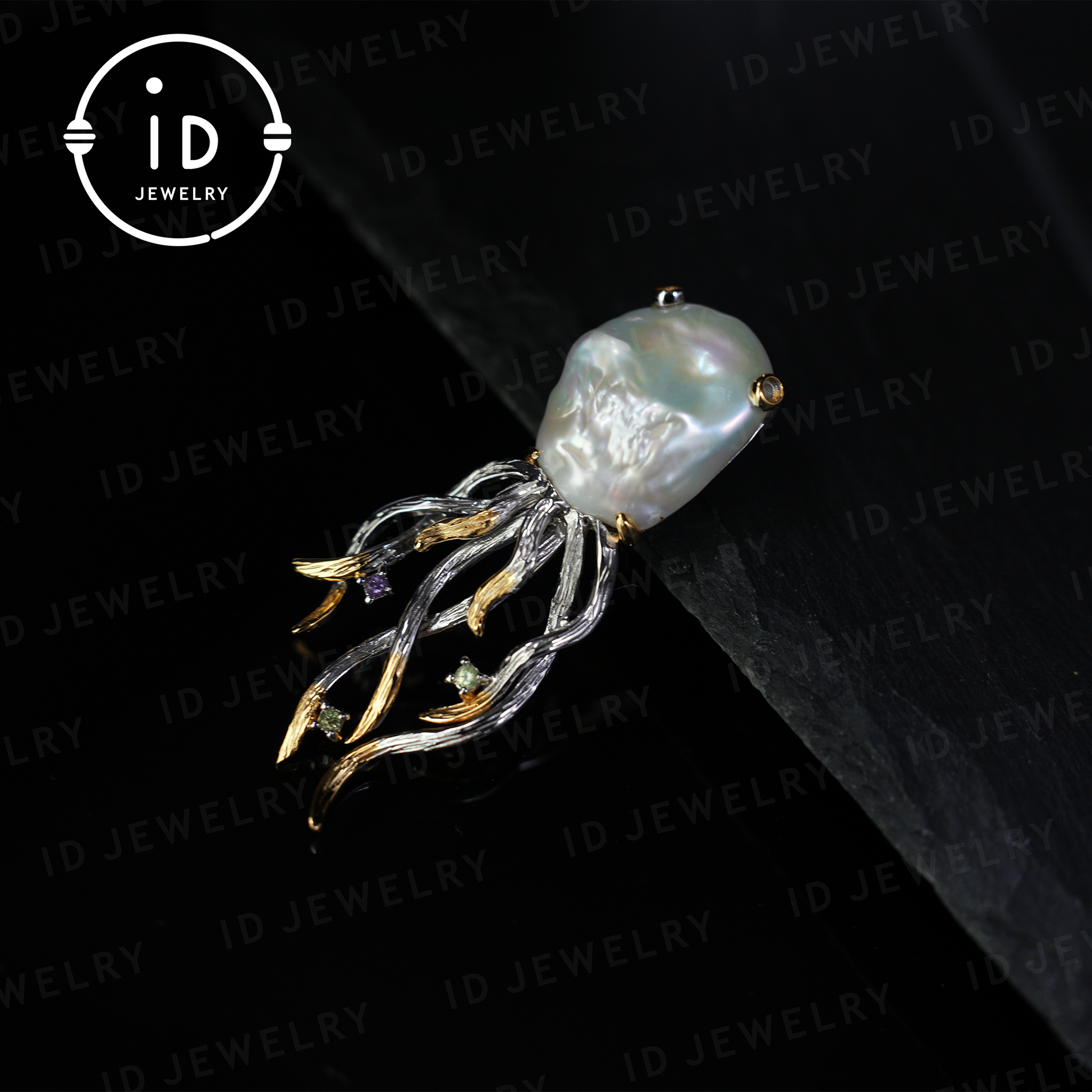 Mystic Baroque Pearl Pendant | Handmade Fantasy Jewelry | Nature Inspired Amulet | Artistic Design Necklace | Unique Gift IdeaF0003