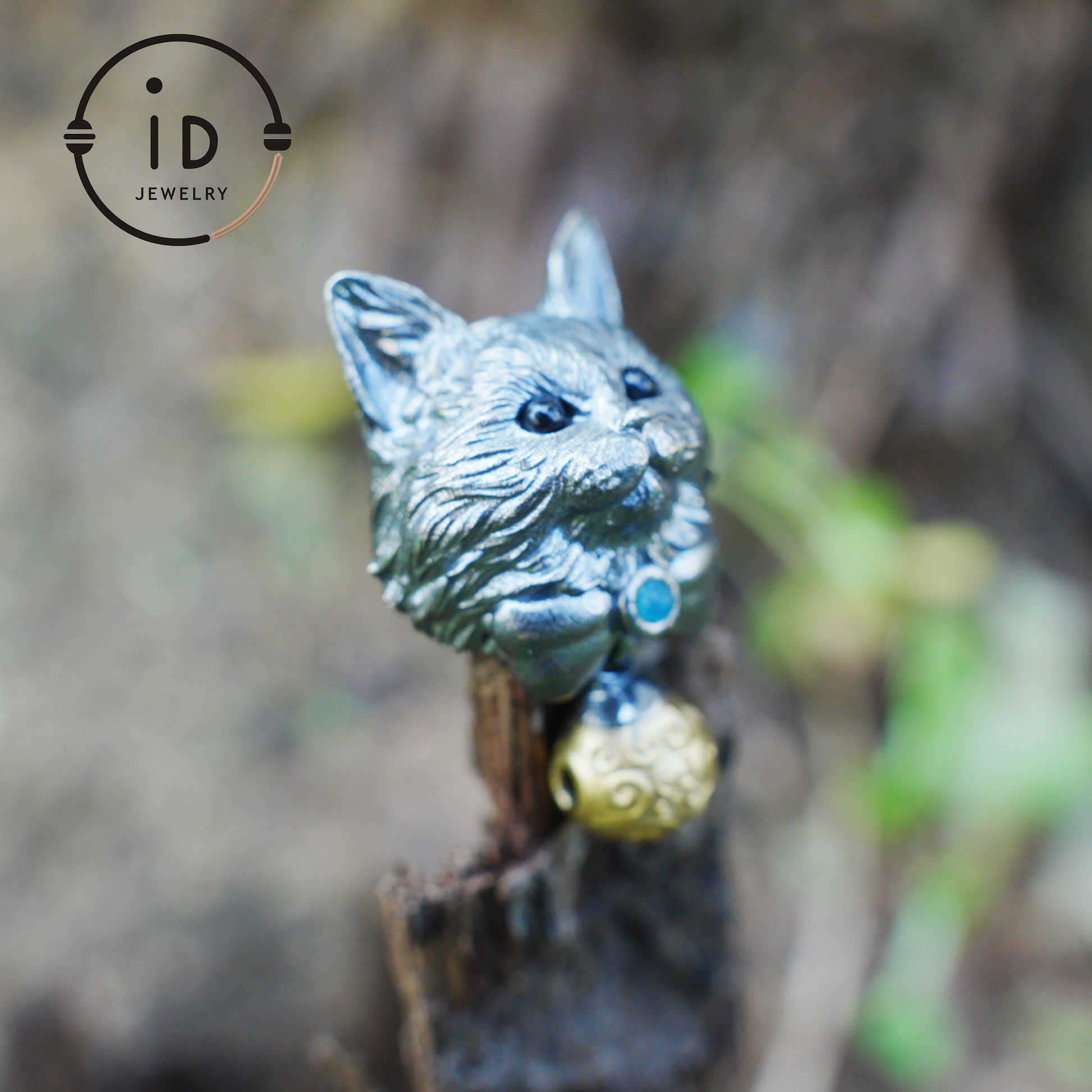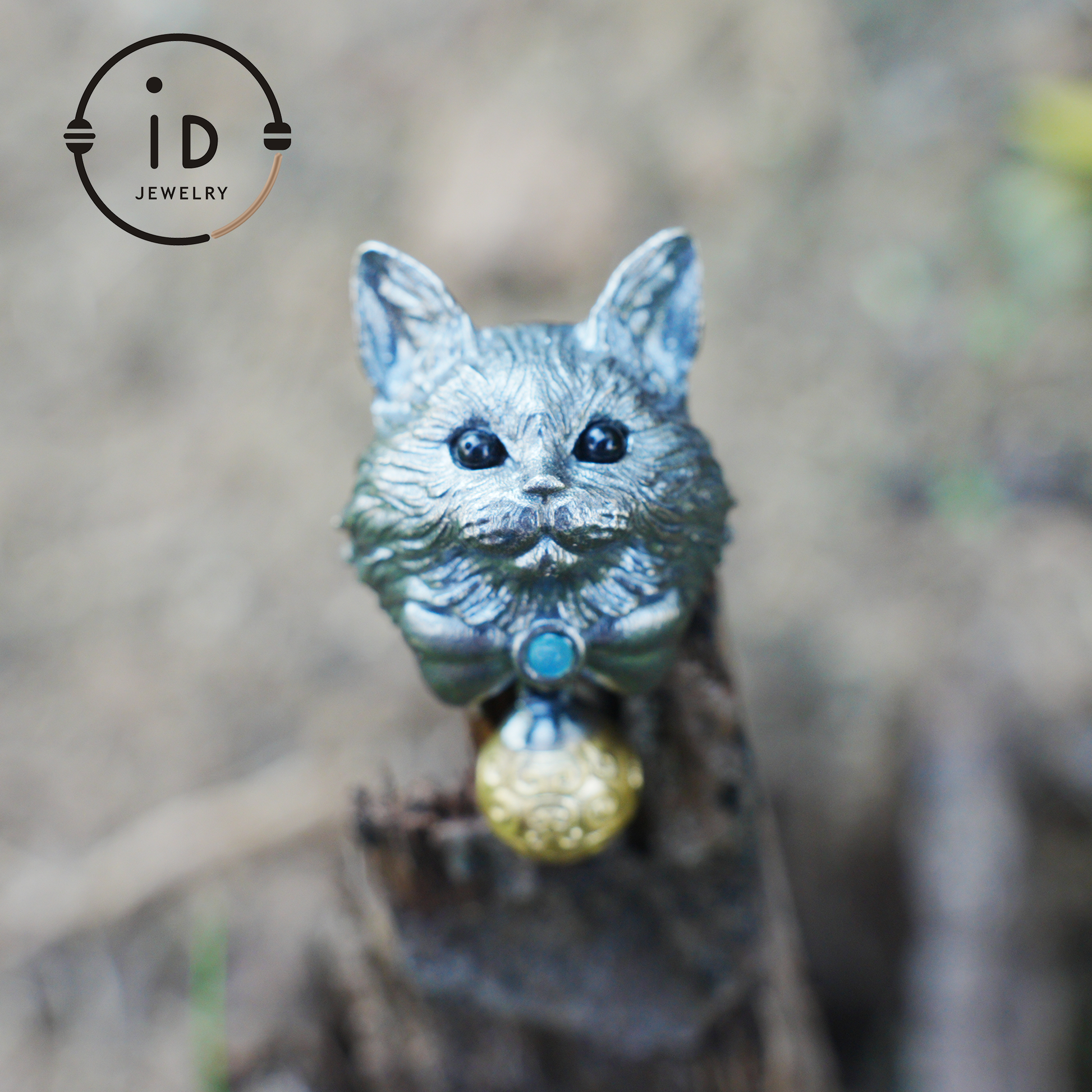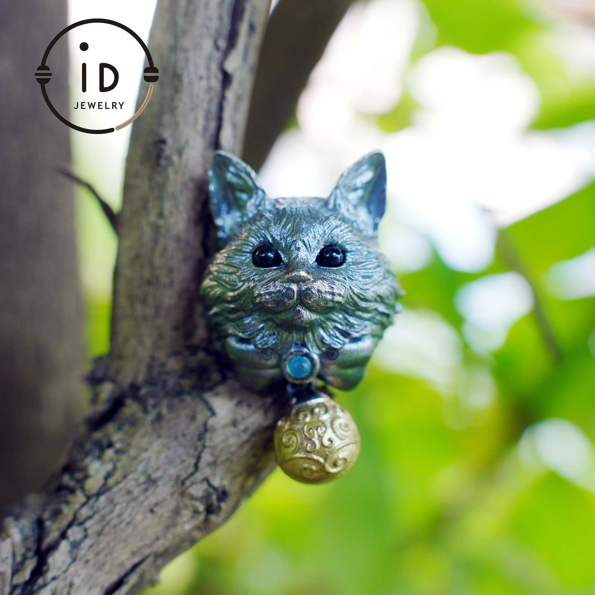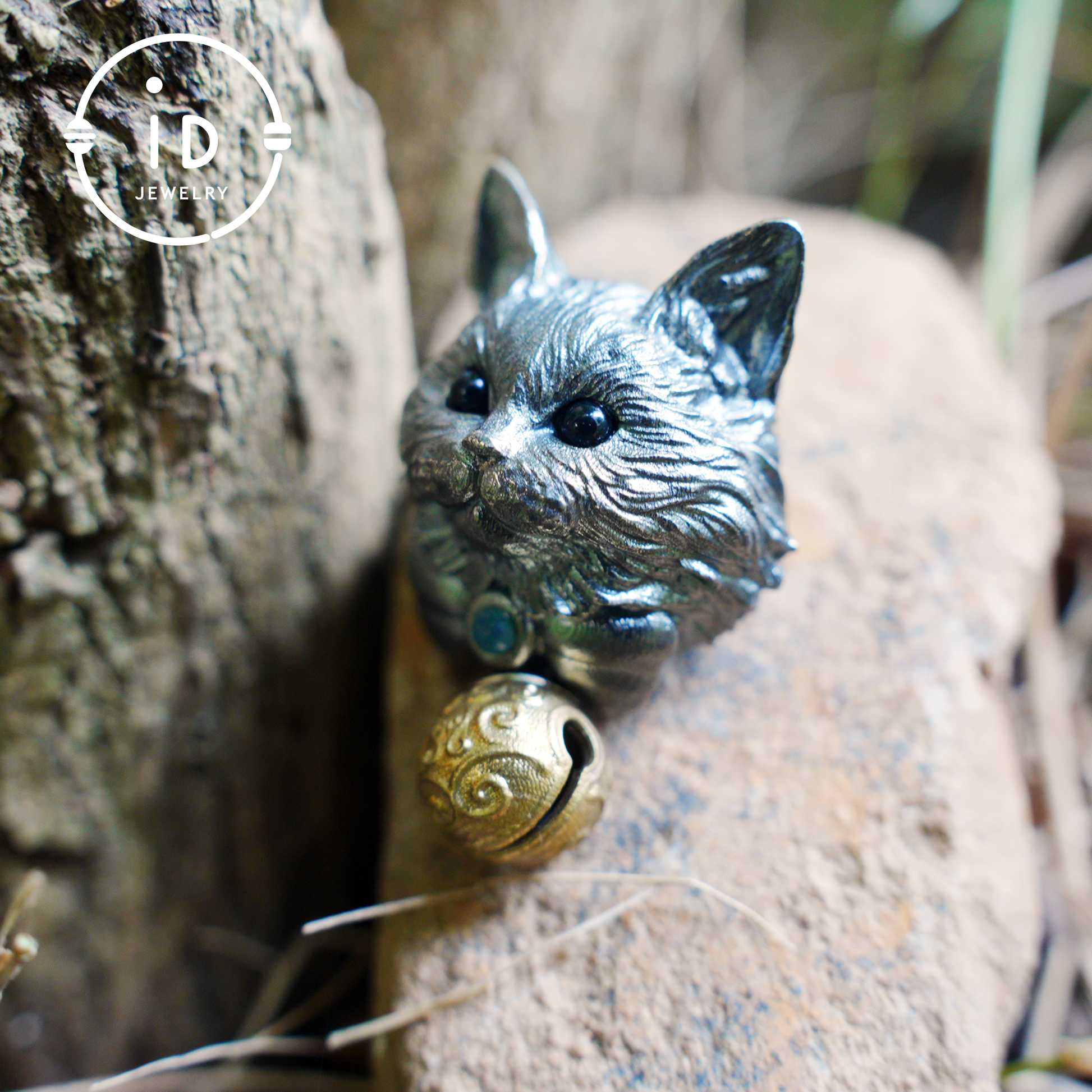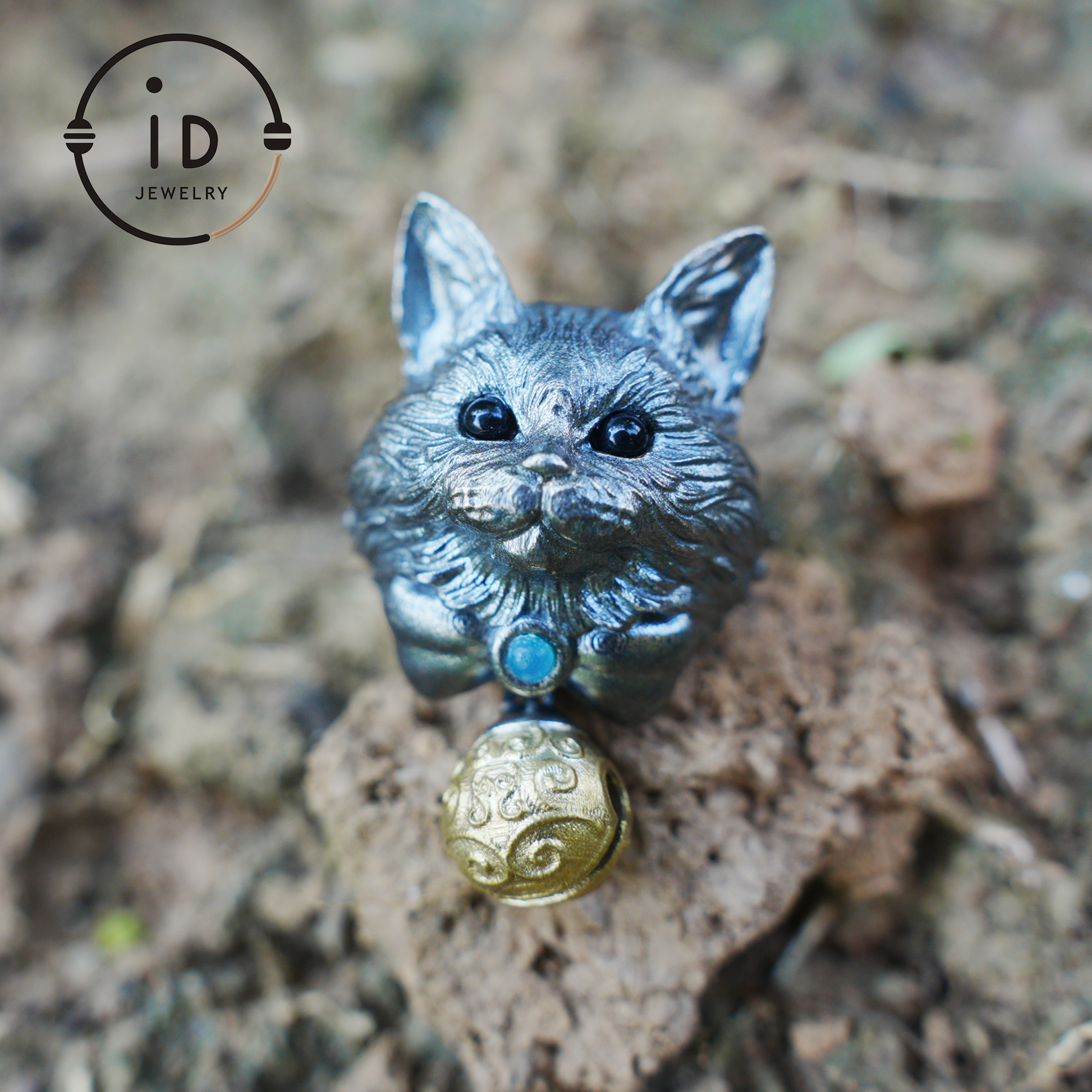 Materials: 925 Sterling Silver (main body) + Natural Black Onyx (eyes) + Aventurine (neck pendant) + Brass (bell)