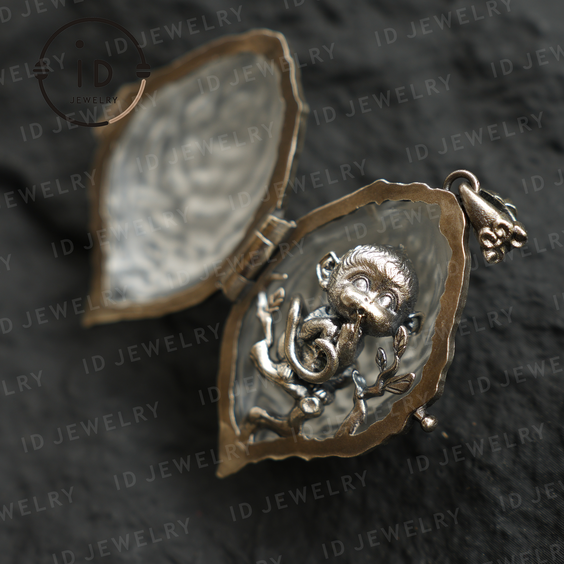 Openable Crystal Peach Pendant | Monkey Spirit Amulet | 925 Silver Jewelry | Handmade Fantasy Talisman | Spiritual Gift for Her