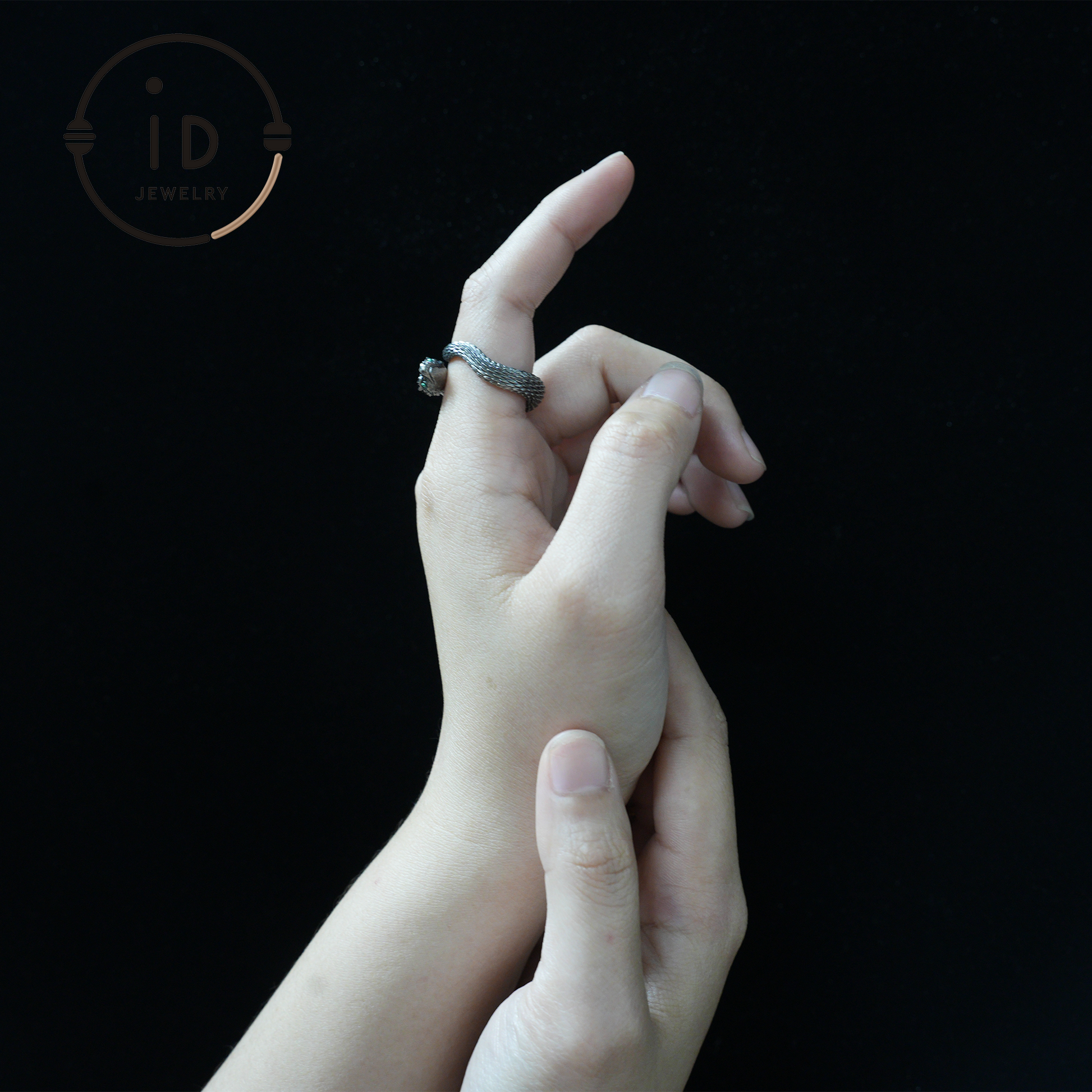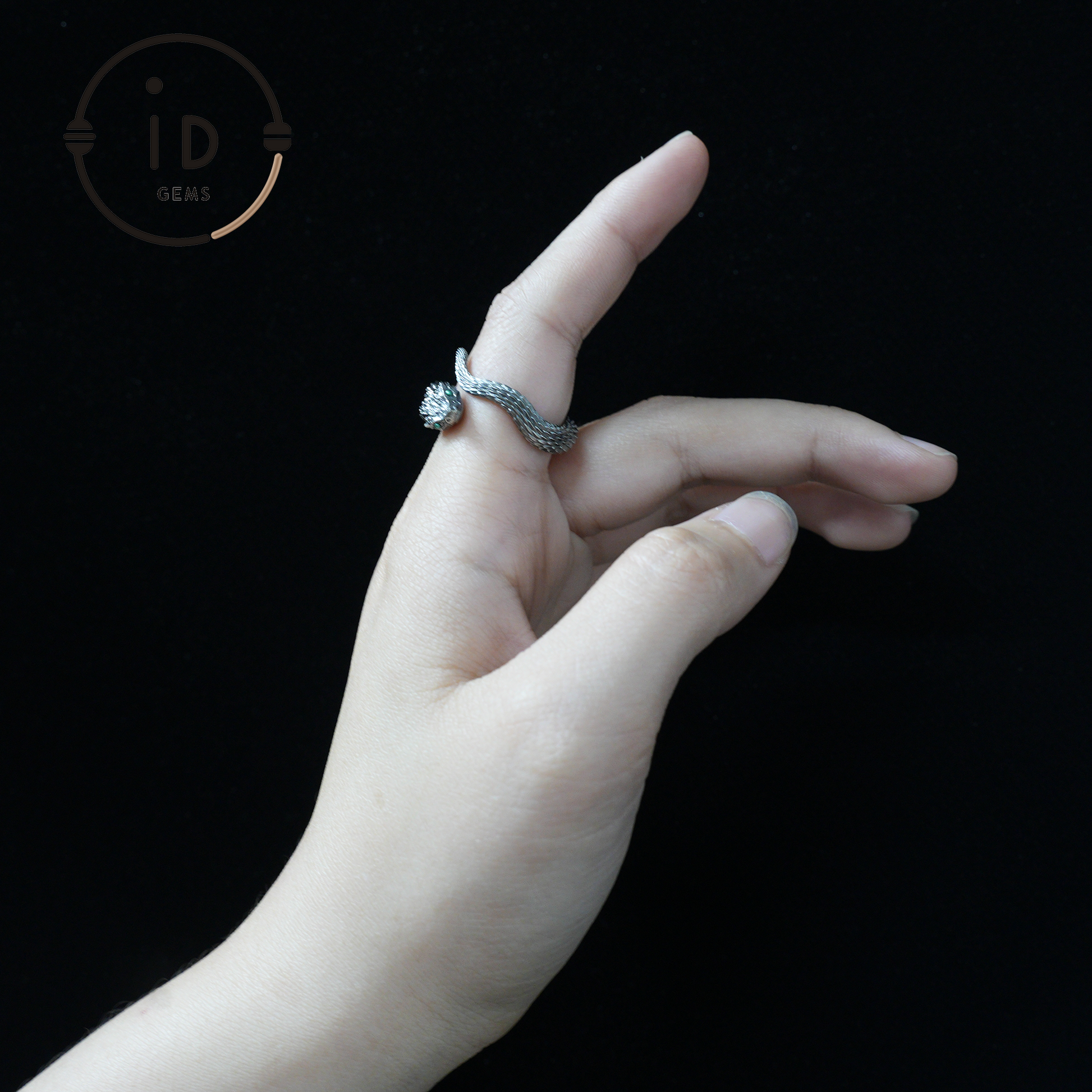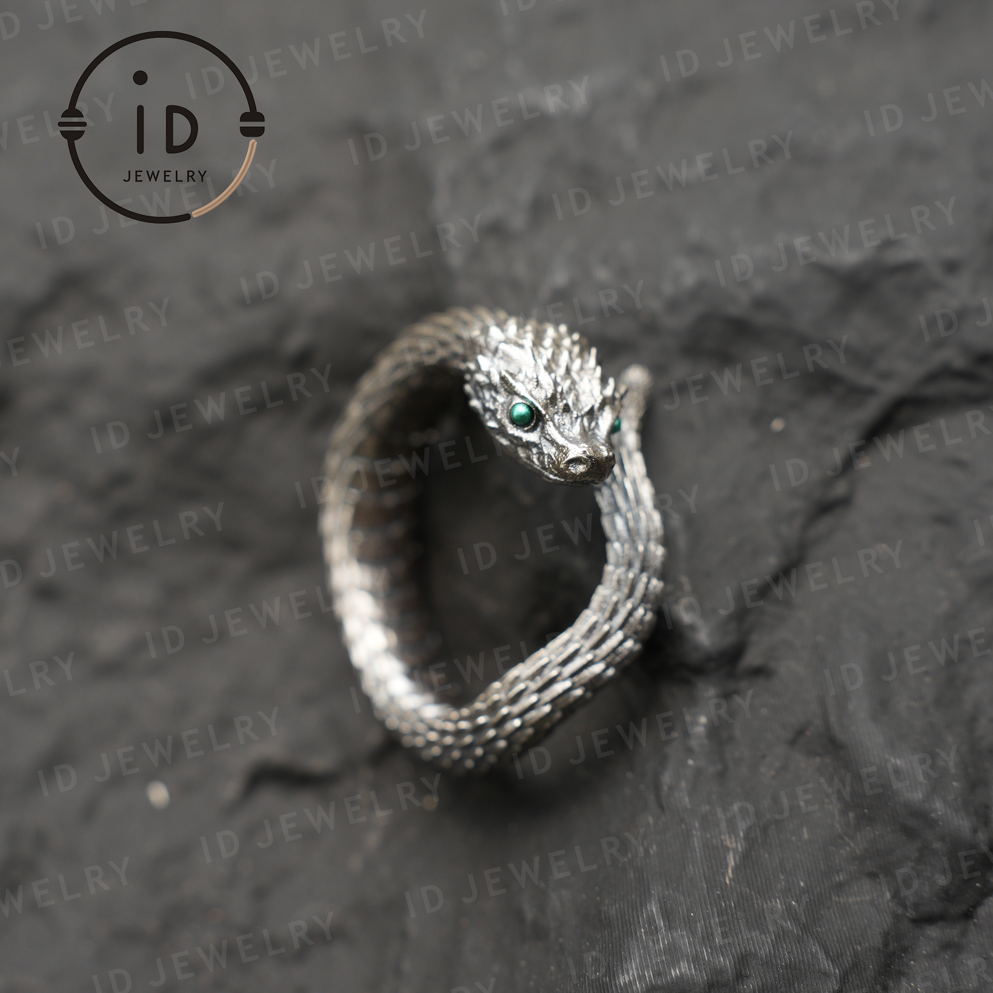Made of solid 925 silver and set with a shimmering green zircon gemstone. The lifelike scale texture and coiling design make it both elegant and powerful.