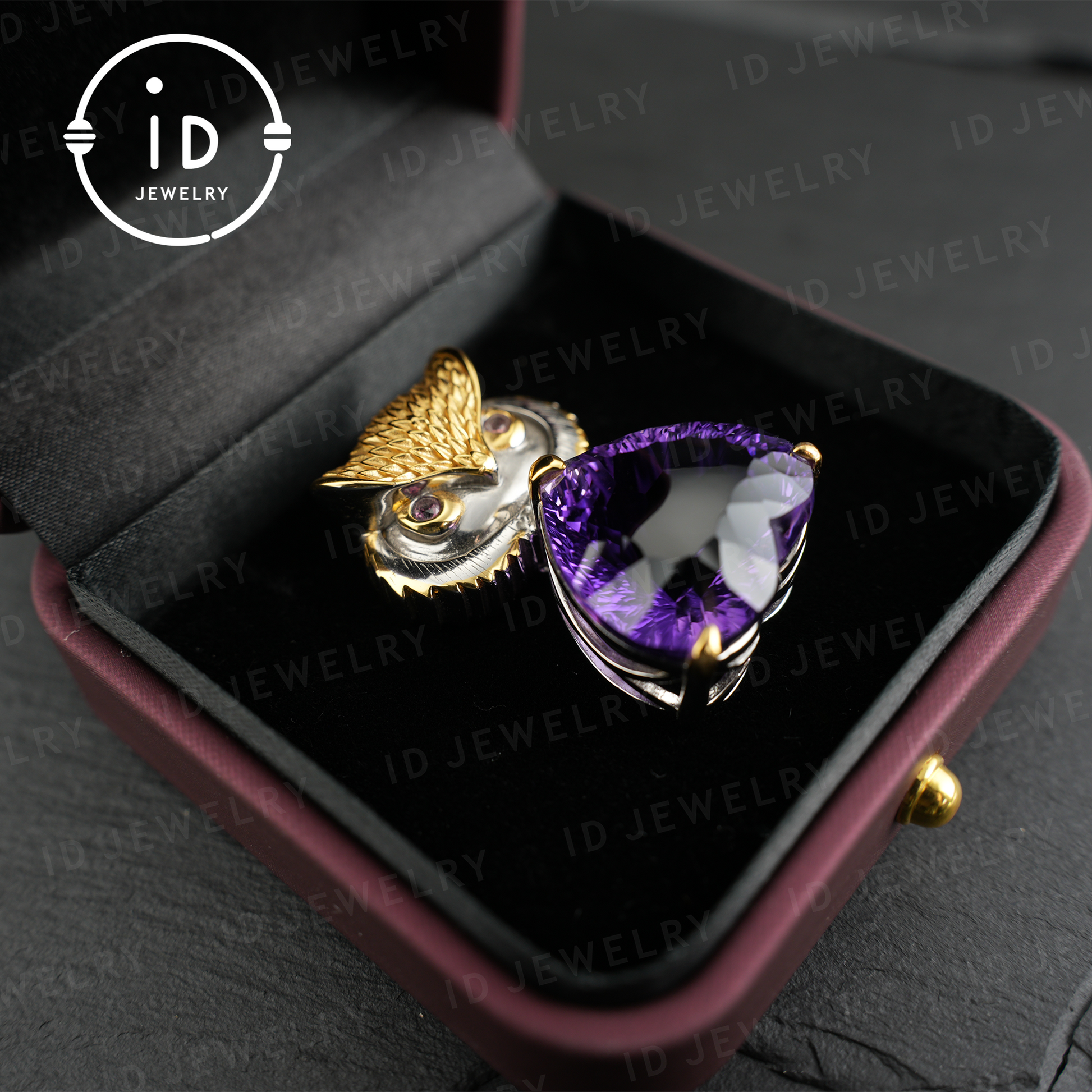 This exquisite handmade pendant combines the wisdom of the owl with the energy of amethyst. Featuring fine gold and silver detailing, this vintage-inspired jewelry is a must-have for animal lovers and jewelry enthusiasts!