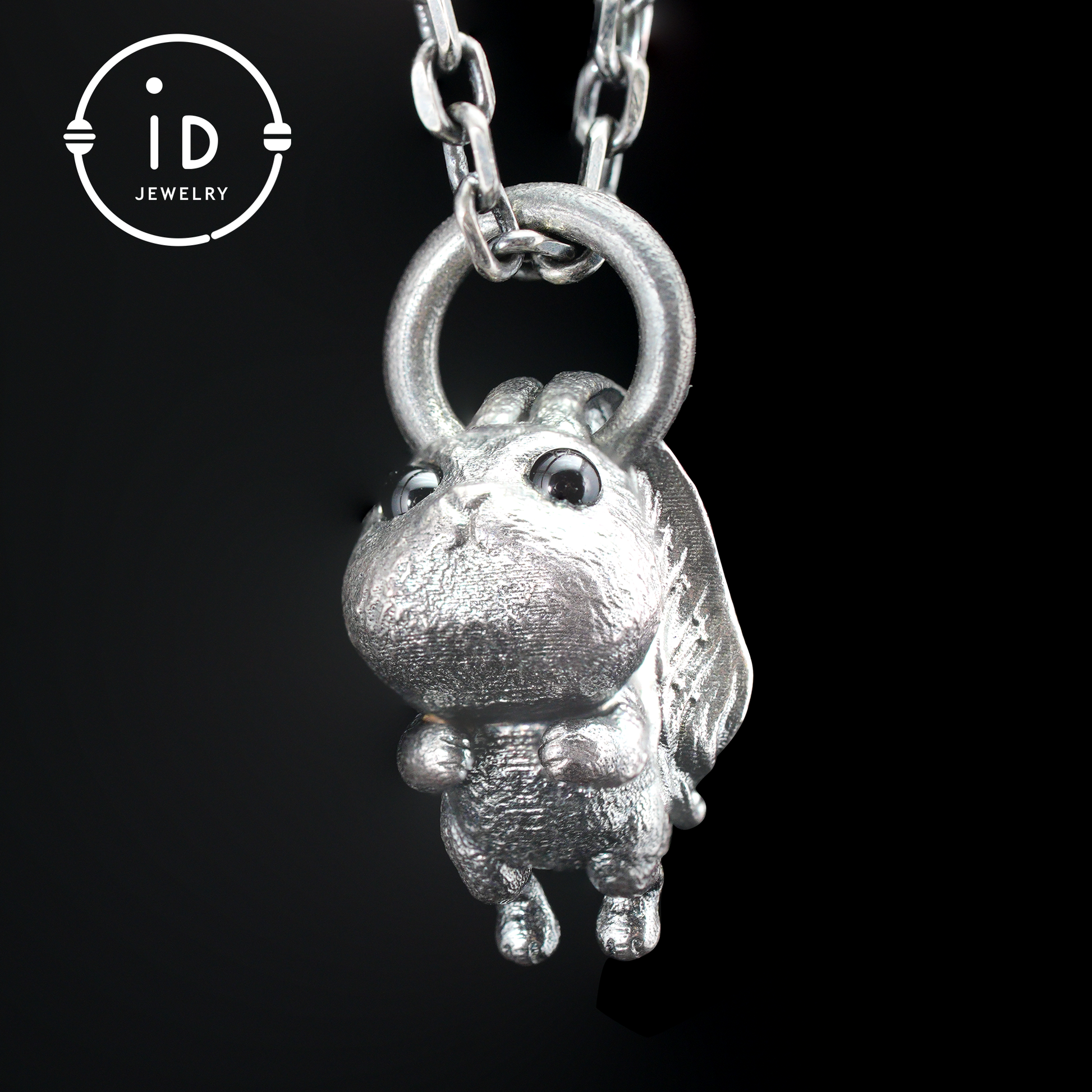 Rabbit Pendant – Leaping Bunny Totem with Onyx Eyes, Handmade Animal Amulet, Symbol of Awakening and New Beginnings