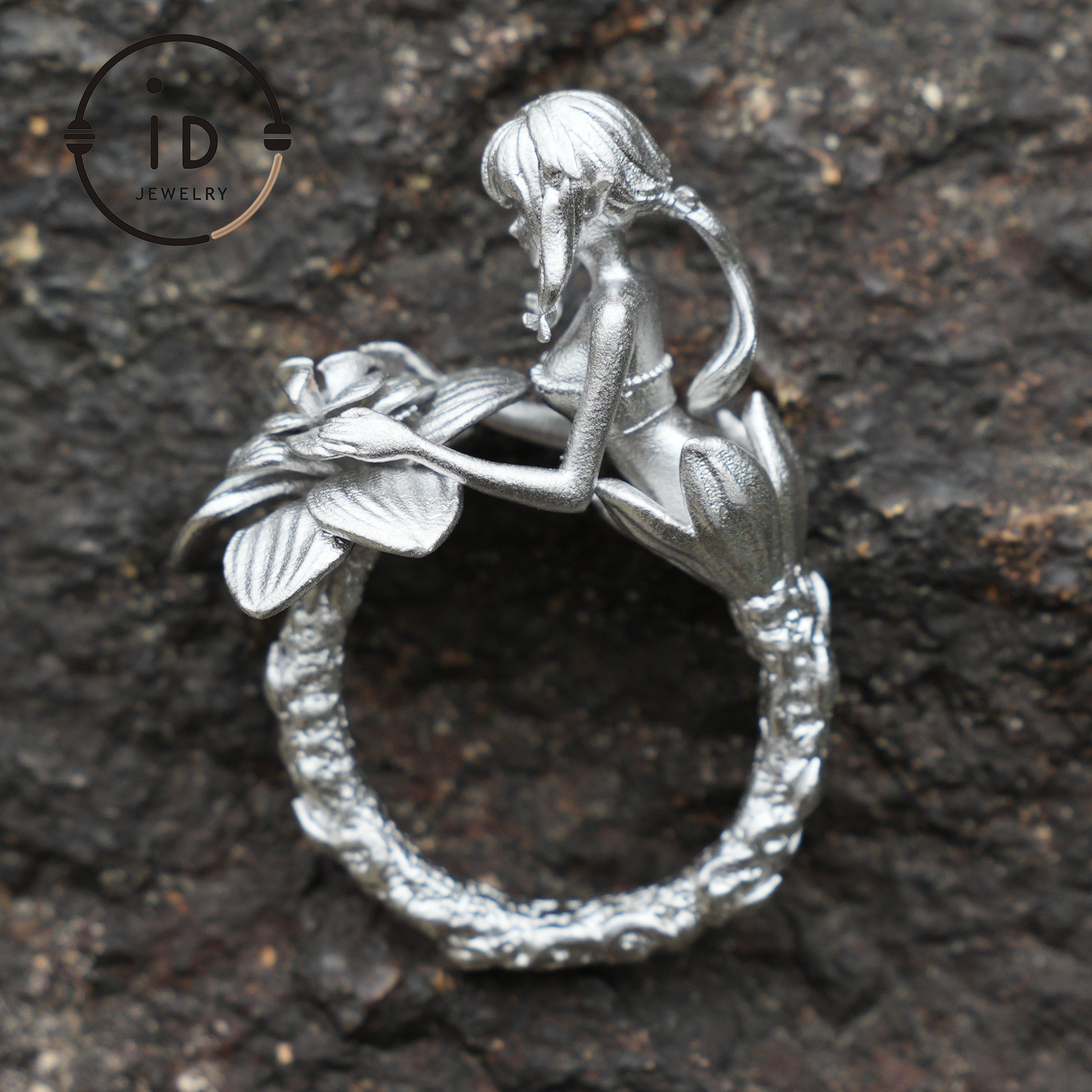 Vintage Fairy Ring with Flower | Handmade Fantasy Jewelry | Elegant Design with 925 Silver & Phantom Stone